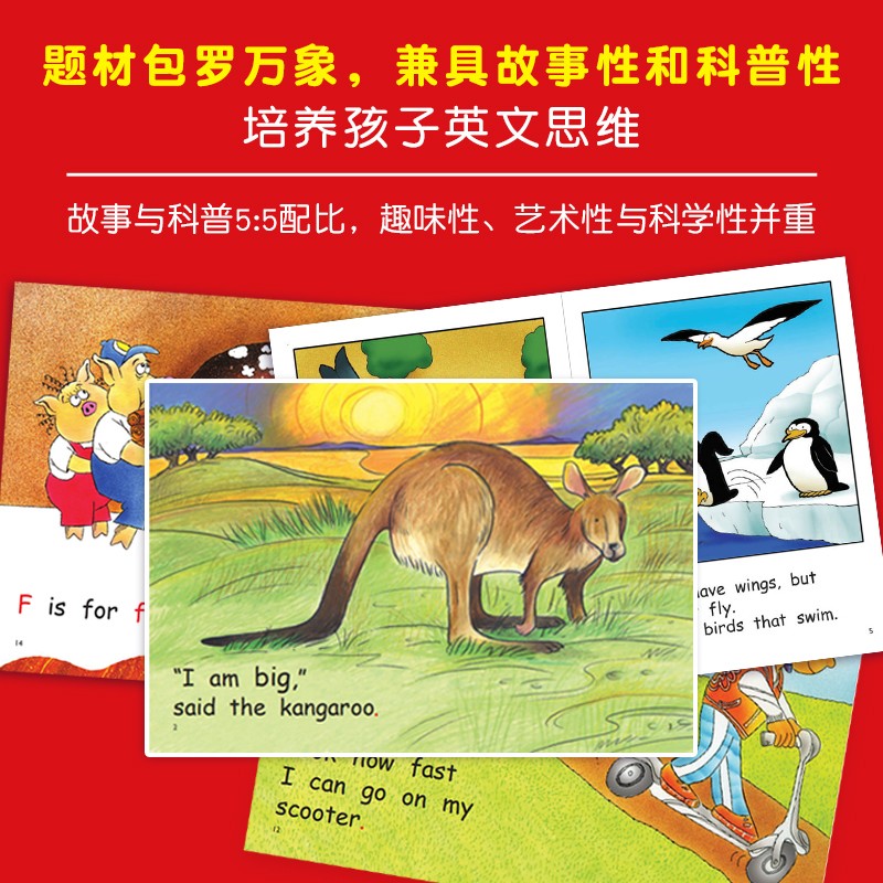这套丛书是美国和加拿大孩子学语言、练阅读的必备材料之一。根据孩子不同年龄和阅读阶段打造,通过包罗万象的题材和兼具故事性和科普性,让孩子提高英语阅读同时扩展知识。此套丛书适合2-6岁语0基础或者基础不太好的孩子和父母。本级别带孩子认识更多形容词,开始学习复数、比较级,时态,以及标点。由图画和短句的阅读,过渡到稍长句阅读,迈出真正阅读的第一步。