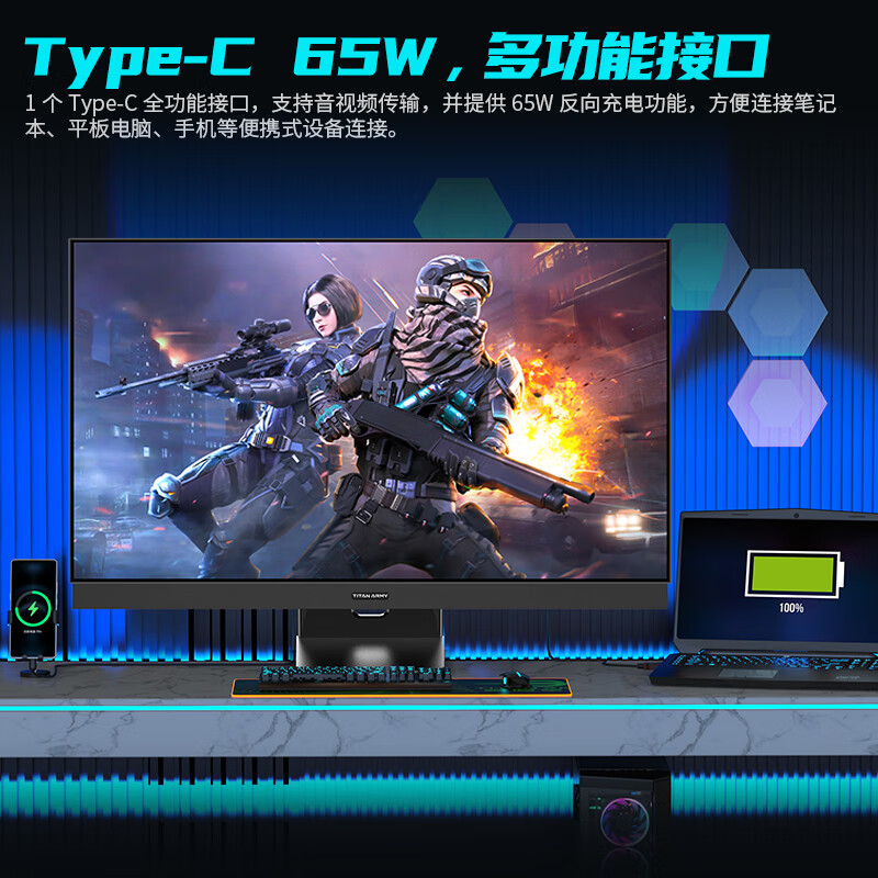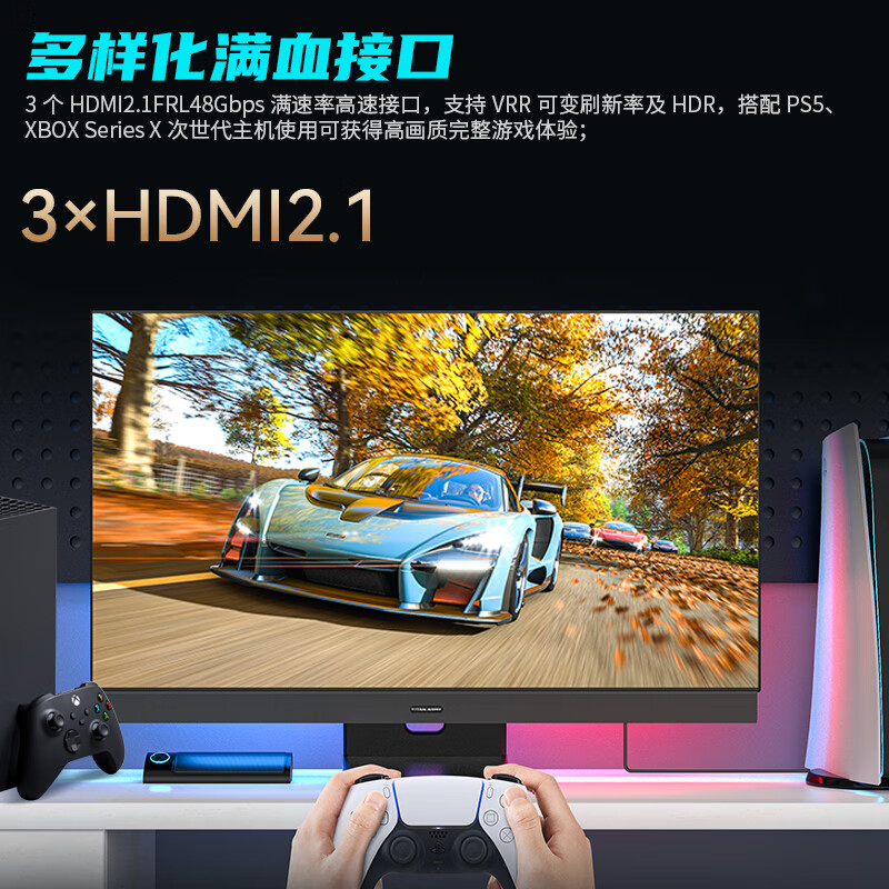 多样化满血接口,3个HDMI 2.1 FRL 48Gbps满速率高速接口,支持VRR可变刷新率及HDR,搭配PS5、XBOX Series X次世代主机使用可获得高画质完整游戏体验。1个Type-C全功能接口,支持音视频传输,并提供65W反向充电功能,方便连接笔记本、平板电脑、手机等便携式设备连接。