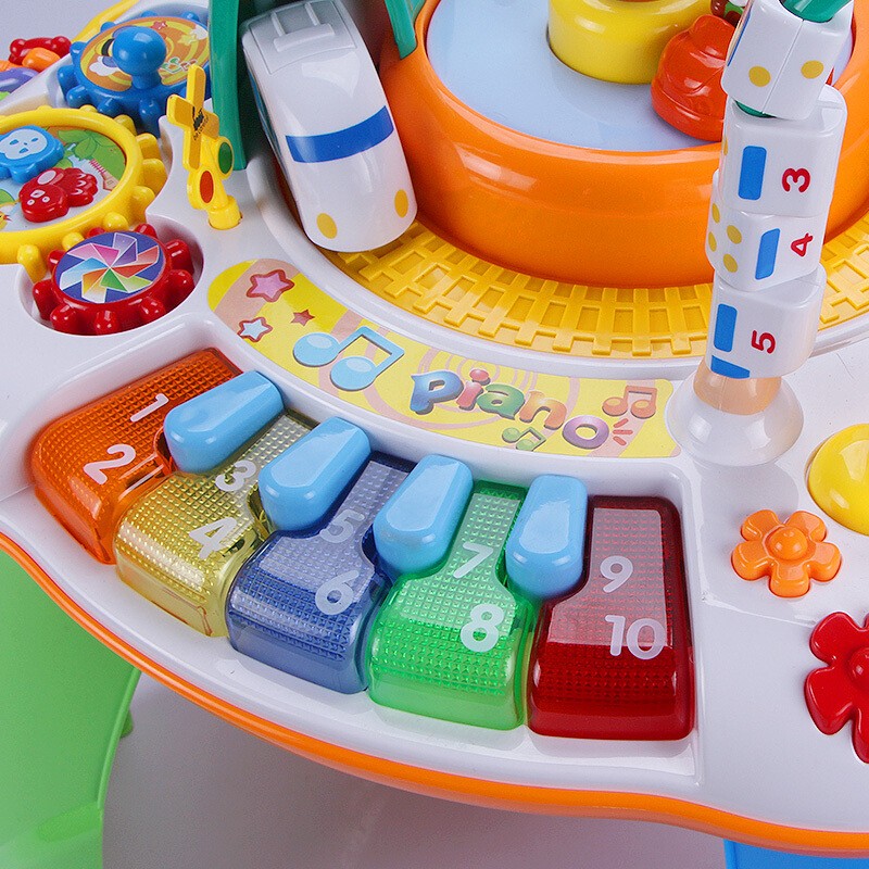 谷雨 儿童双语学习桌配置有钢琴按键,双语开关,还可模拟列车场景,组装方便,多种丰富的玩法和配置,可学说话、听音乐、认图形,互助玩乐。