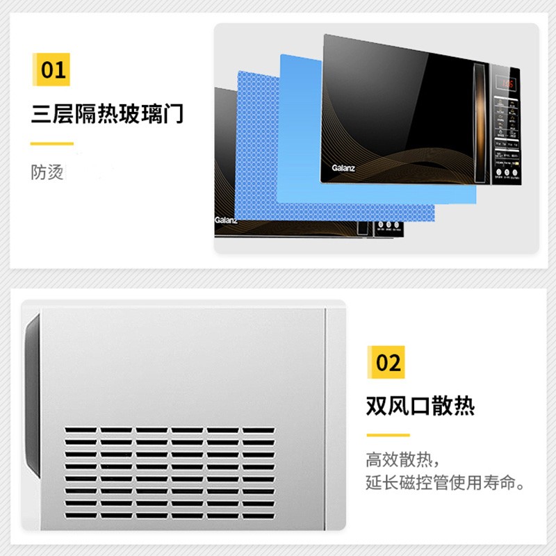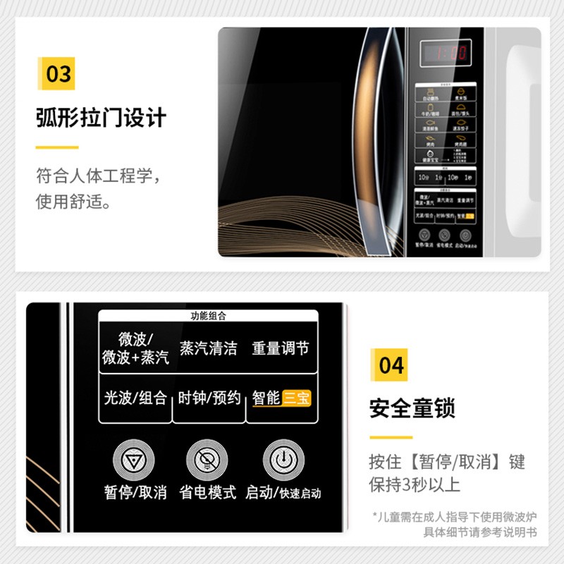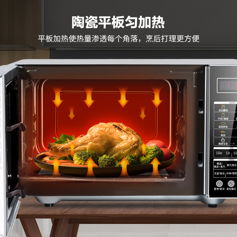 格兰仕(Galanz)此款型号为G90F25CN3L-C2(G1)的光波炉,为京东定制款,可用京东微联APP在线完成各种操控,25L大容量,光波功率900w,微波功率为1400w,能够快速加热,平衡营养和效率;37项功能键,蒸煮炖烤样样通;内部侧壁蒸汽水盒,微晶平板,加热均匀且环保;内置旋风导热装置有利于散热,液晶显示屏。