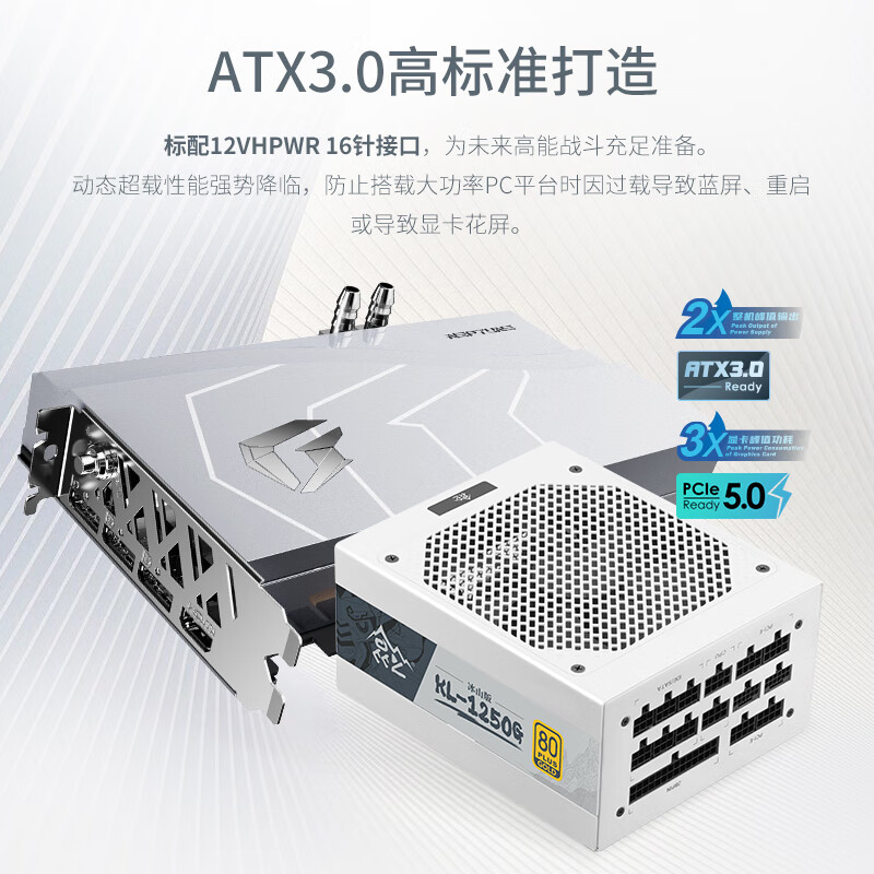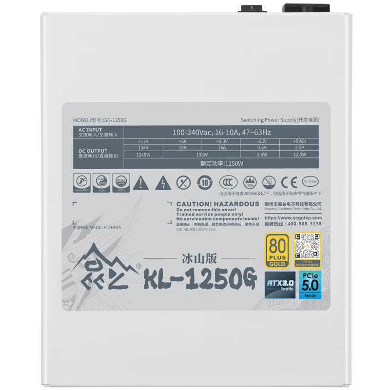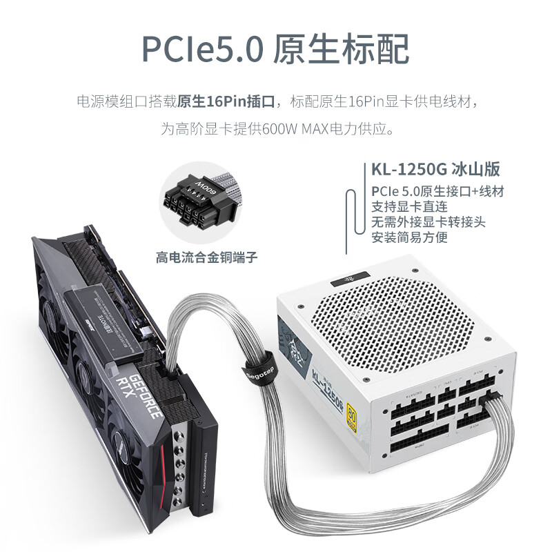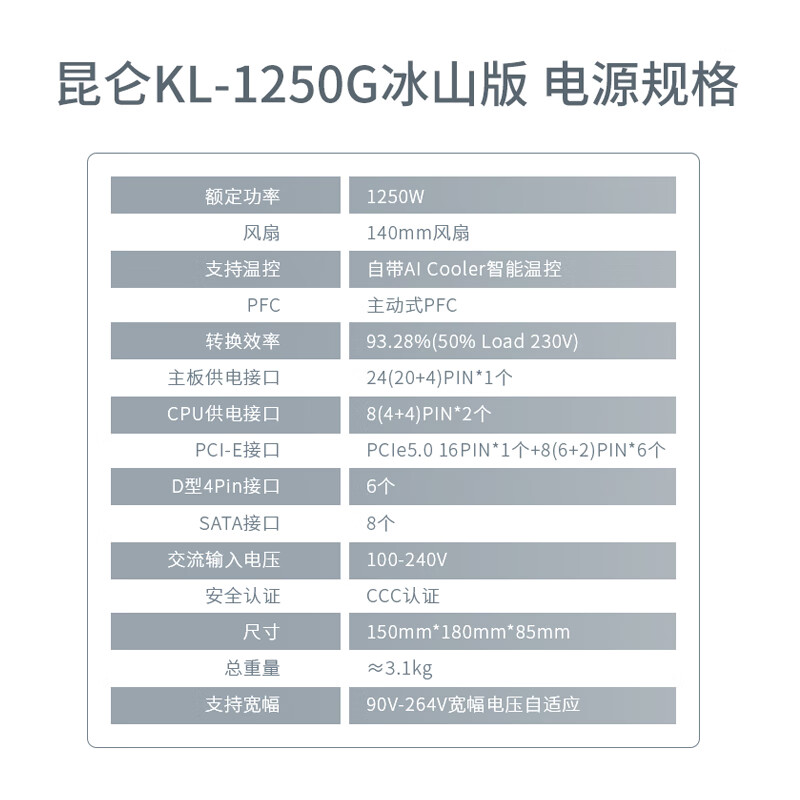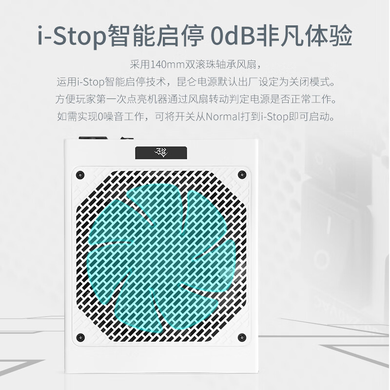 电源模组口搭载原生16Pin插口,标配原生16Pin显卡供电线材,为高阶显卡提供600W MAX电力供应。高压、低压、模组输出PCB板采用高品质日系三强电容, 400V/105C耐高压耐高温,保证电源稳定性的同时使用寿命更长,LLC Pro白金纯血架构,DCDC固态电容电路,采用140mm双滚珠轴承风扇, 运用i-Stop智能启停技术,昆仑电源默认出厂设定为关闭模式。