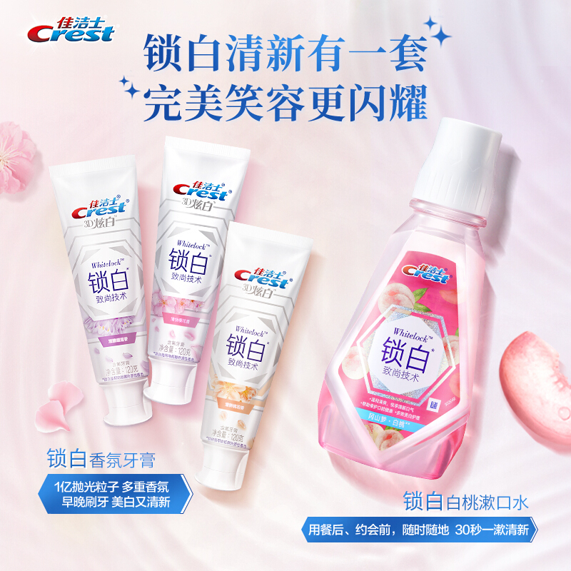 Crest(佳洁士)是美国宝洁公司的口腔护理品牌,诞生于1955年。 其产品包括全优7效,牙龈护理,抗过敏护理,防蛀修护牙膏以及牙刷等。