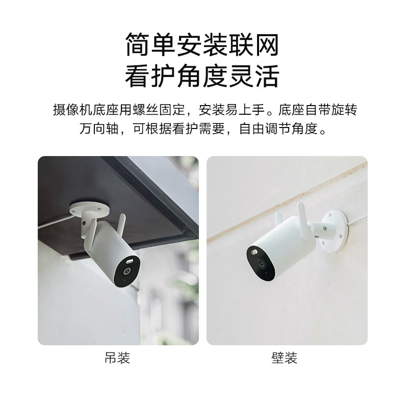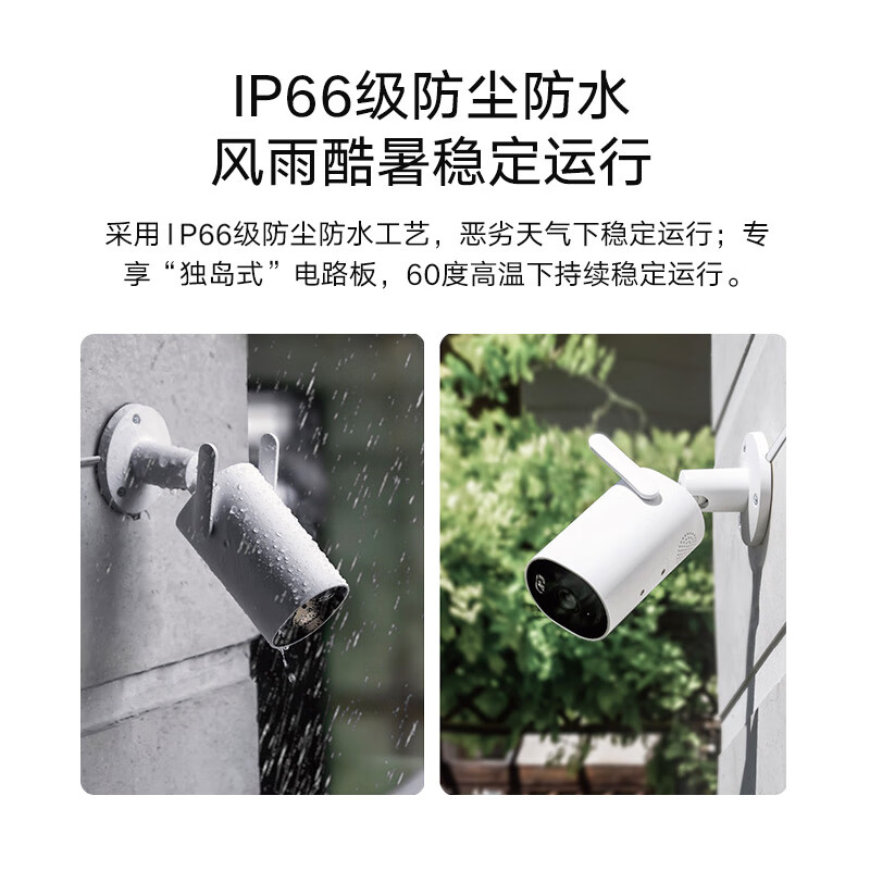 小米 AW300 室外摄像机支持2K超清画质,采用300万像素超清CMOS传感器,专业级光学镜头,24小时日夜忠实值守,高清记录画面变动情况。采用WDR宽动态技术,可应对室外各类复杂环境,内置2颗大功率白光灯和2颗红外灯,智能全彩夜视,黑夜成像清晰,有人经过时,自动打开白光灯补光。内置大功率喇叭与高保真麦克风,装在高处也能听清语音,7m远场清晰拾音,声画同期录制,采用新一代H.265视频编码技术,节省视频存储空间,视频录像还支持多种存储方式。IP66级防尘防水,高增益外置Wi-Fi天线,视频传输距离更远,穿透性好、抗干扰能力增强。