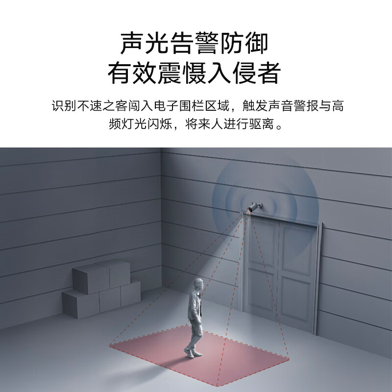 功能方面,智能电子围栏,关注画面重点区域,有不速之客闯入电子围栏区域,摄像机主动进行声音警报与高频灯光闪烁,将来人进行驱离。支持多机位看护实时画面多分屏,可在电视、平板、手机等设备上,通过米家APP同时查看多台摄像机实时拍摄画面,支持4路画面同时开流查看。