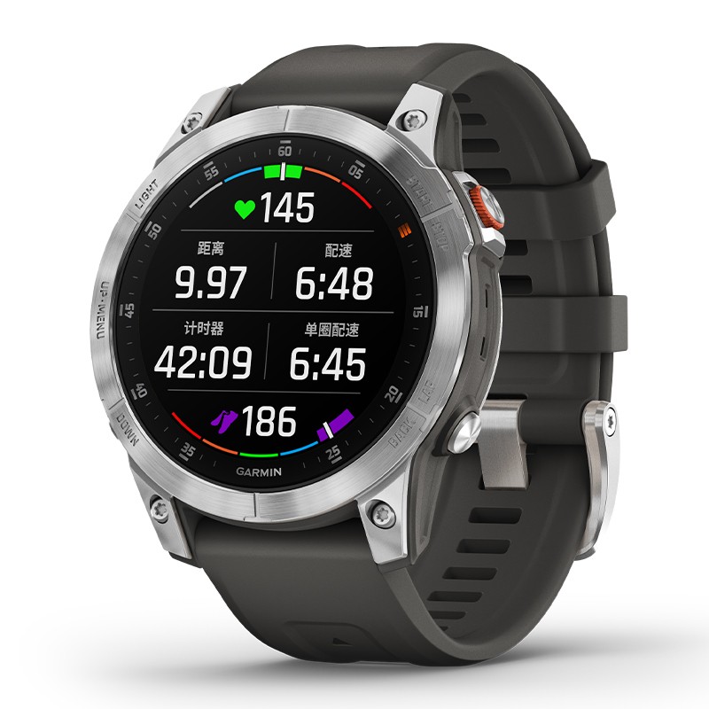 EPIX定位高端商务智能腕表,炫彩高清AMOLED触屏,出色视觉享受,颜值与性能并存,运动日常两相宜。搭配耐磨高透合成蓝宝石镜面,画面清晰,质感温润,提供轻量与日常使用的耐磨需求。内置全新搜星芯片,功耗更低,支持五种全球卫星系统和双拼(L1+L5)搜星频段,能同时搜索多重卫星系统,并自动优选合适组合,快速定位与减少信号干扰。1小时快速充满电量,结合AI智能电源管理,高效控制腕表续航,GPS性能模式可达42小时、时间模式可达21天,智能模式可达16天。预置全球43000+球道图,多场景运动模式。