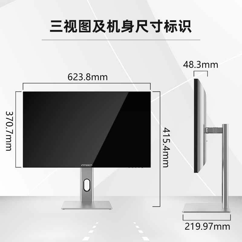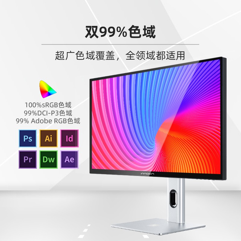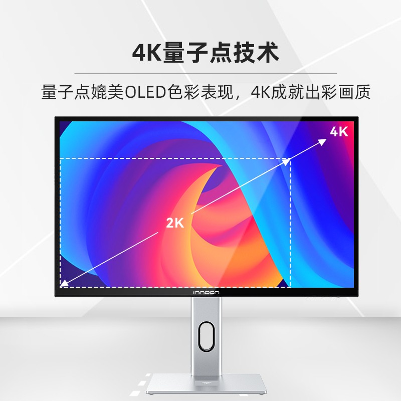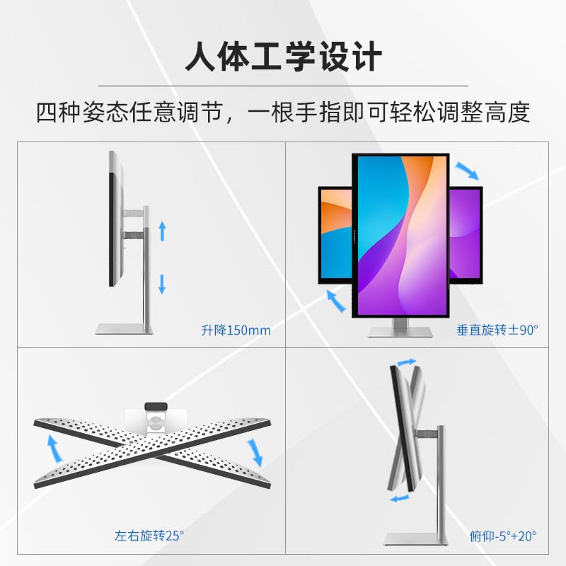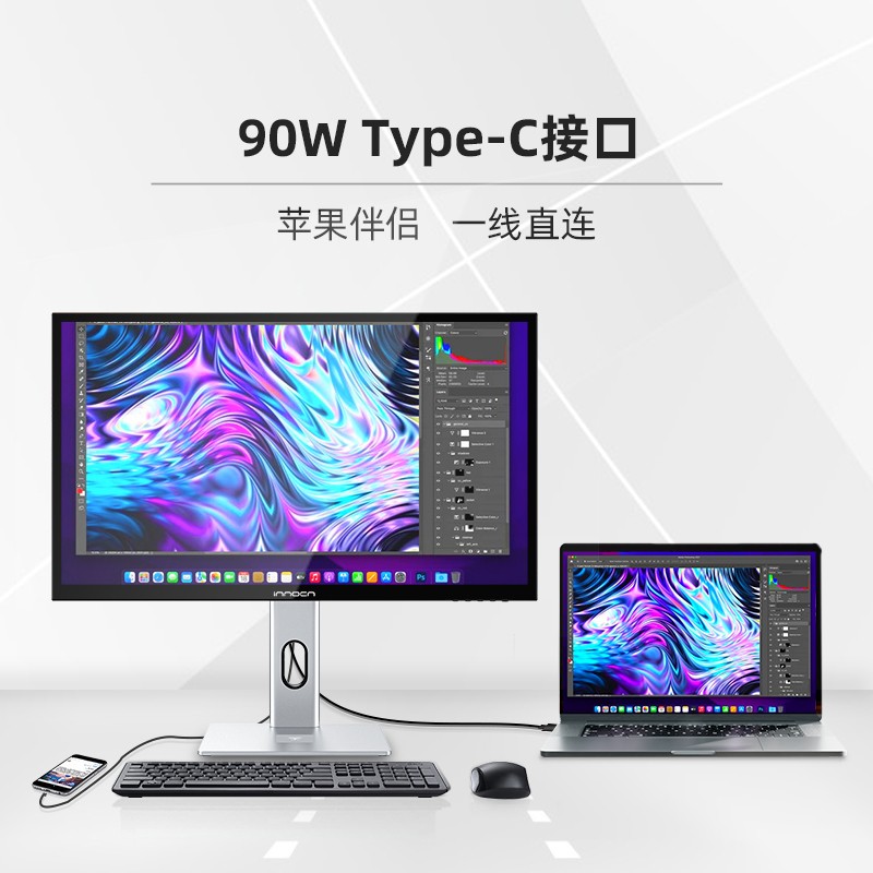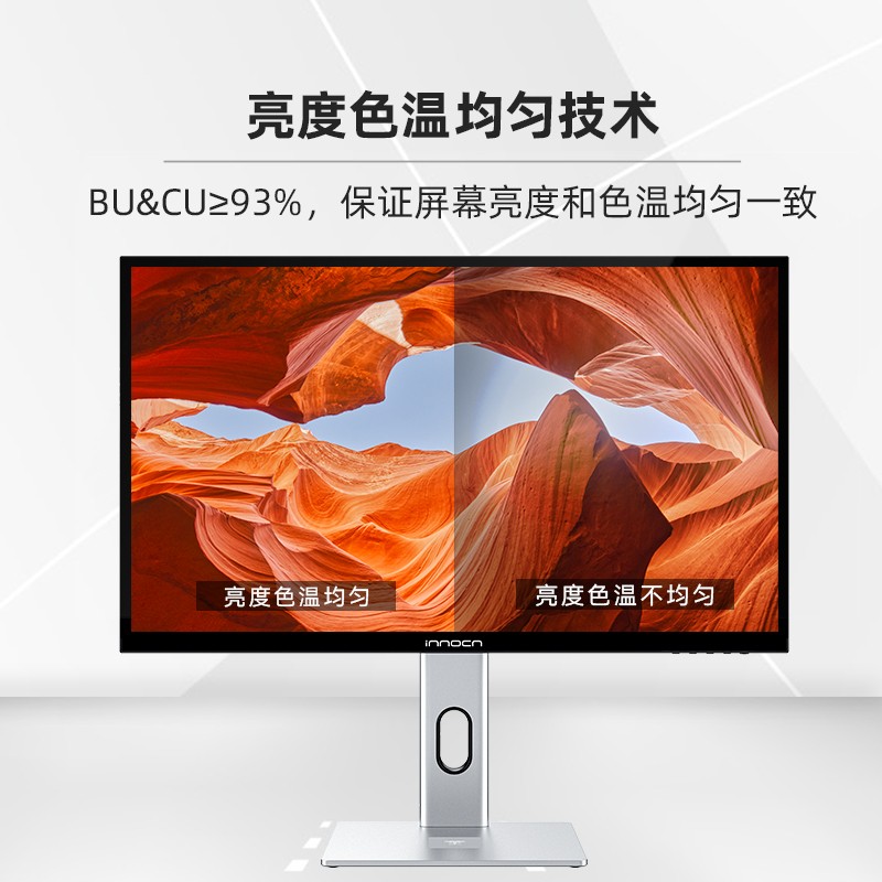 联合创新27P1U此款显示器采用一块27英寸3840*2160分辨率全贴合IPS屏,采用全新QD-LCD量子点技术,动态对比度可达1000000:1,支持HDR400,峰值亮度500尼特。100%SRGB色域,99%Adobe RGB色域,99%D- CI-P3色域色域覆盖超广泛,出厂校色。配备亮度色温均匀技术,保证屏幕亮度和色温均匀性趋于一致,内置光线传感器,自动调整屏幕亮度,内置重力感应器,可智能识别产品横竖屏状态,并自动切换系统的显示方向。支持一触投屏,最高支持4个设备同时投屏。接口方面,配备2*HDM1 2.0、1*DP1.4、1*USB-B 、1*Type-C以及1*3.5mm音频输出接口,Type-C接口支持90W充电。整机重7.6Kg,支持壁挂。