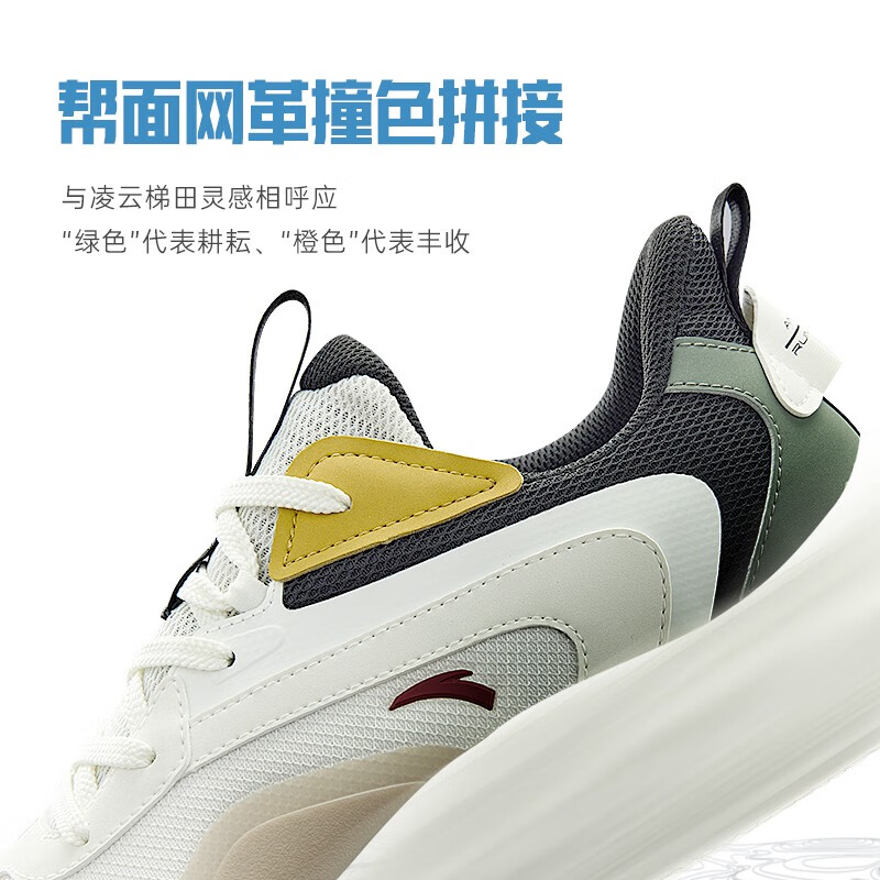 ANTA 安踏 男款运动跑鞋 912235588YS,从凌云梯田中感受田园生活的轻松舒适,安踏从凌云梯田中汲取灵感,以梯田曲线作为设计元素,结合现代工艺,打造安踏全新日常舒适慢跑鞋一一凌云。