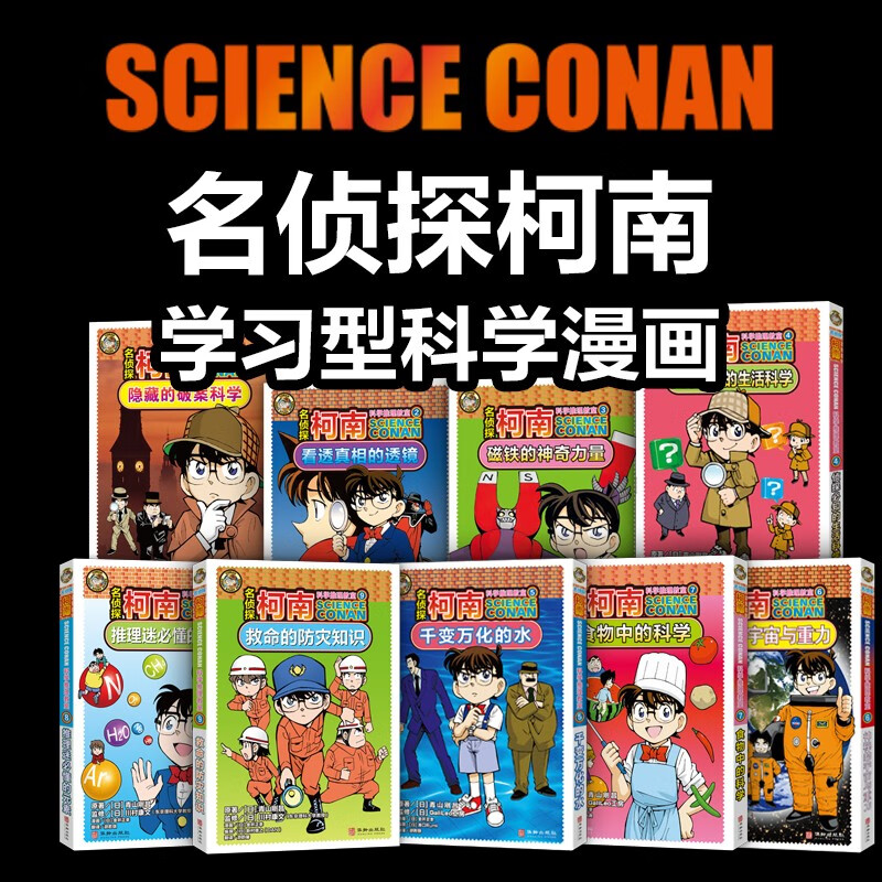 《名侦探柯南科学推理教室》全9册,非漫画,与以往出版的柯南全部不同,为柯南IP的衍生产品,以学习型科学漫画为主,不是单纯讲解科学原理,由孩子们喜爱的卡通人物名侦探柯南与少年侦探团成员带领大家在剧情里解谜,孩子们只要阅读漫画就能自然而然地吸收科学知识。孩子体会到科学的有趣之处,因此也会爱科学,从而有效提升理科成绩。