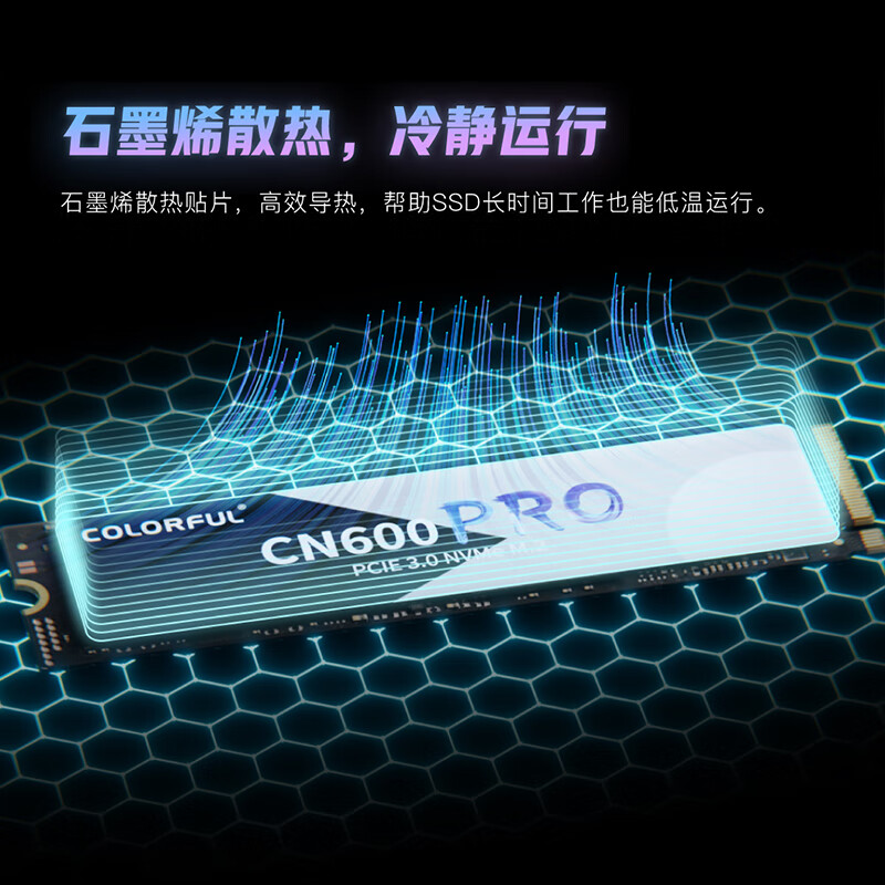 CN600 PRO系列为标准PCle3.0通道,标准M.22280外形尺寸,适用于大部分普通台式机与笔记本电脑,石墨烯散热贴片,高效导热,帮助SSD长时间工作也能低温运行。该系容量有:256GB、512GB、1TB。512GB读取速度可高达3300MB/s,写入速度可高达2600MB/s。