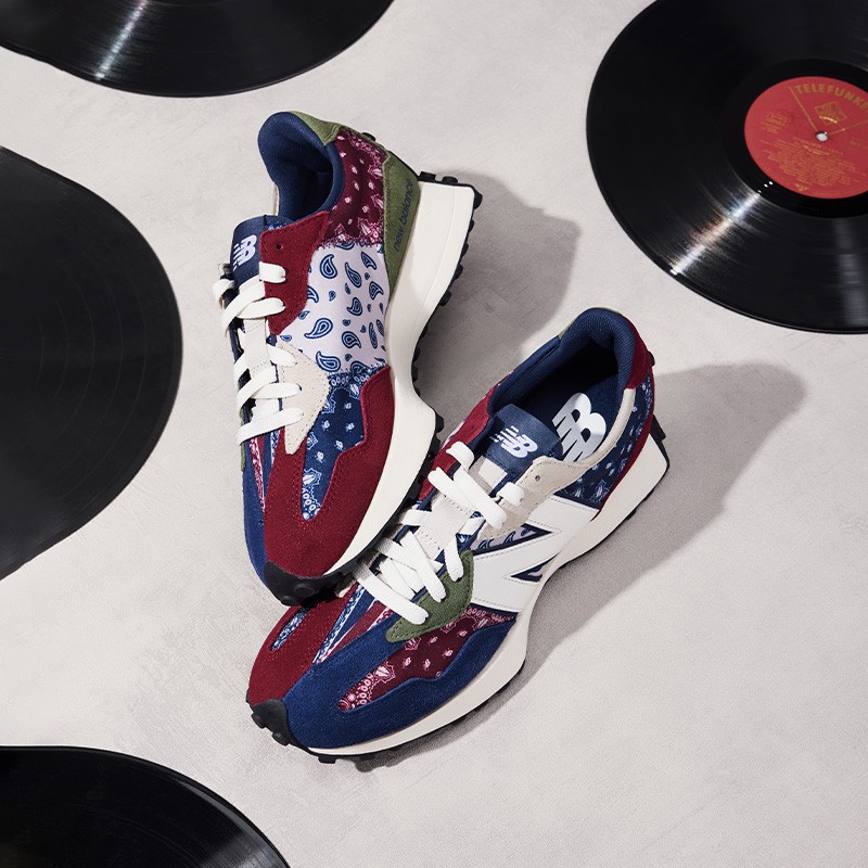 New Balance大热经典327鞋款以70年代竞速跑鞋为蓝本,集320、355、Super Comp三双经典鞋款之大成,充分吸收与运用优质鞋型元素。颗粒橡胶大底提升抓地力,爪纹式前掌裁片配置与包裹式足跟则带来更舒适的穿着体验。并采用了拼接剪裁设计,将Paisley腰果花图案镶嵌入经典327鞋款中,彰显出复古质感与经典品味的碰撞。