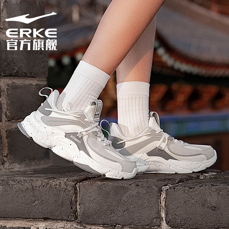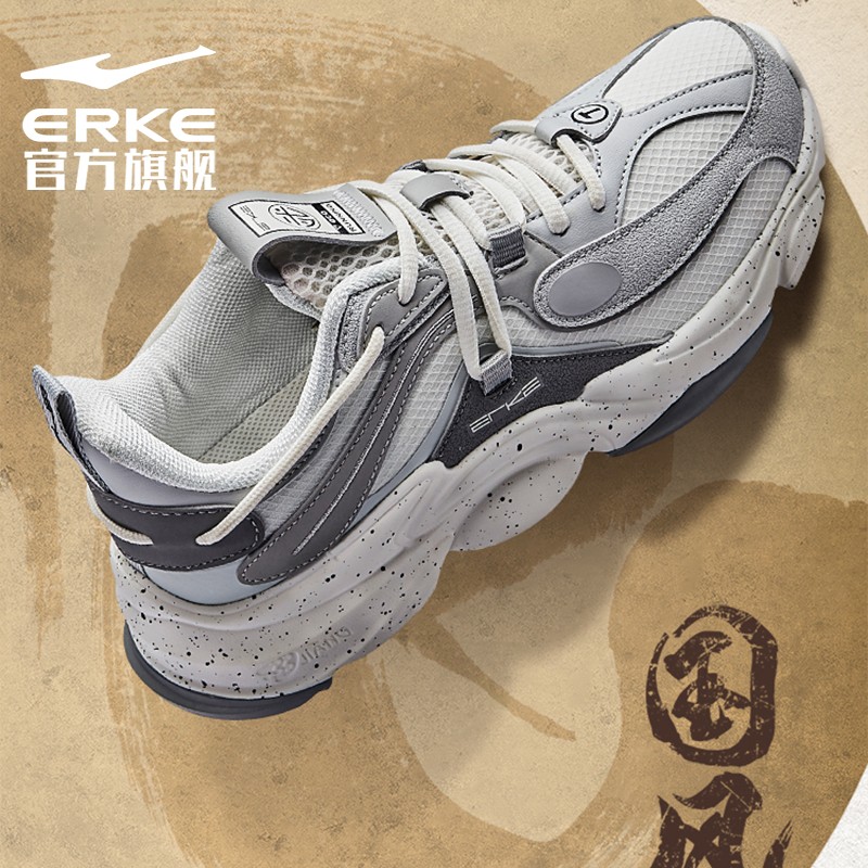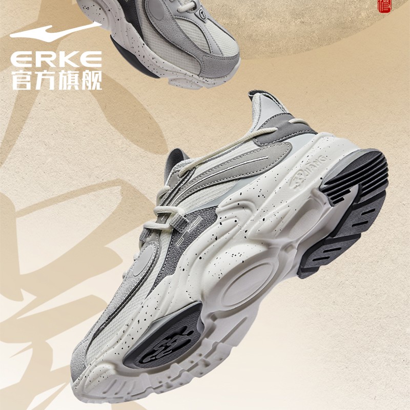 ERKE 鸿星尔克 浔系列 天吴 男子跑鞋 51121103111 以绸缎面料构成高质感鞋身,并加入传统花纹刺绣作点缀,形象地展示了「天吴」主题。缓震气垫,舒适回弹,出行运动无压力。杠条元素,跳色织带,个性潮流,休闲百搭。