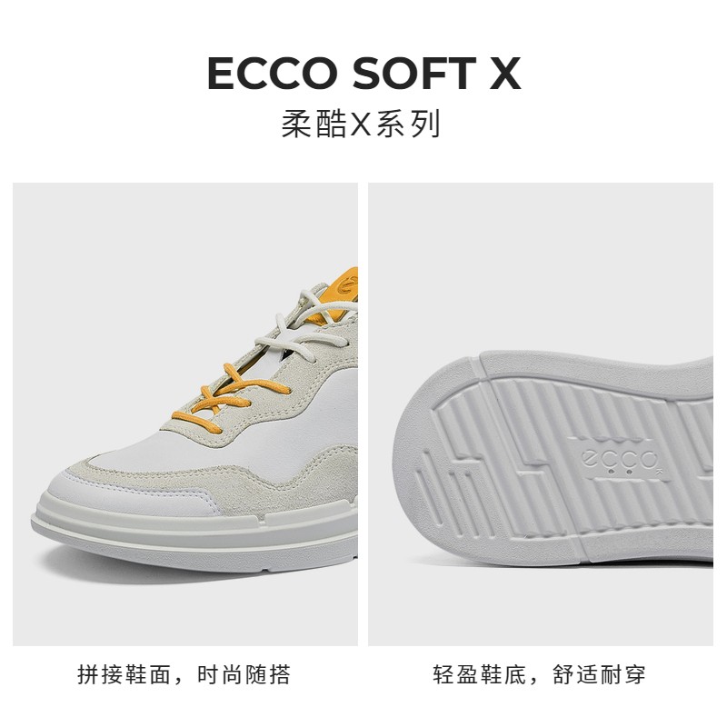 ecco 爱步 柔酷X系列 女士休闲运动鞋 420403,牛皮与牛翻毛皮拼接鞋面,质感丰富,出街有型。潮流的撞色后跟,便捷的绑带设计,可自由调节松紧。圆形鞋头设计,贴合前脚掌弧度,适合多种脚型,带来舒适脚感。直接注塑的PU鞋底,轻盈柔韧舒适耐穿,乐享行走每一步。