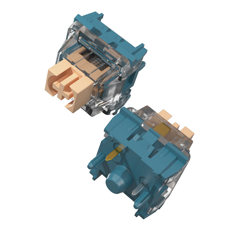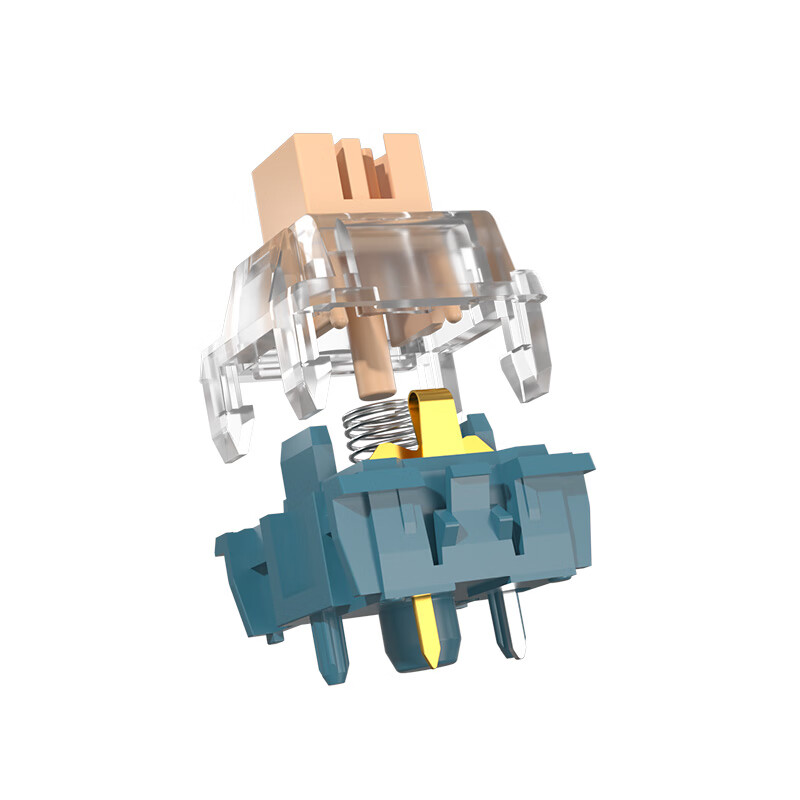 国潮配色,新增十字导心,总行程:4.0±0.4mm,操作力:40±10gf,导通行程:2.2±0.4mm,机械寿命:约7000万次。