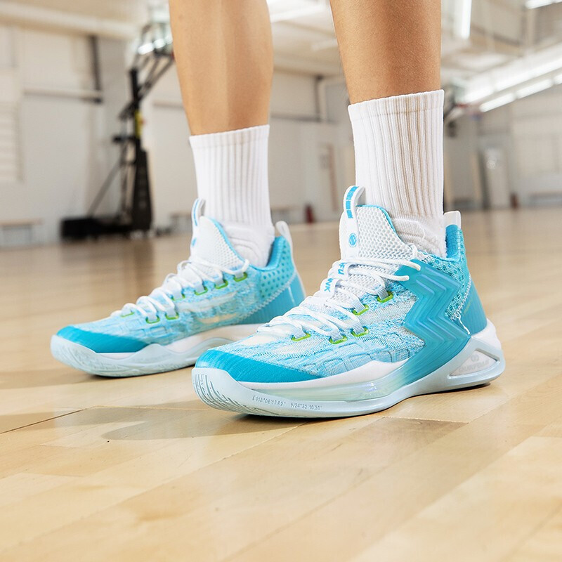 鞋子的邦面采用针织结合tpu网纱,包裹性强的同时,还具有舒适透气,鞋面笼式结构加强,鞋身各方位的支撑与包裹同时兼具轻量化与透气性。TPU全覆盖地面一体搭载渐变“3"logo展现"多一度热爱"的品牌文化。同时提供侧向有效支撑,Q弹科技中底具有大力回弹、缓震、耐皱,强力爆发保护关节。鞋底TPU结构源自仿生人体足底筋膜灵感设计,有效保护足弓,全掌的橡胶大底防侧翻361°Q弹减震防滑篮球鞋,白/奇幻紫配色,鞋面渐变的针织和鞋侧身处采用渐变“3"logo展现,灵感源自于利福尼亚的日落。