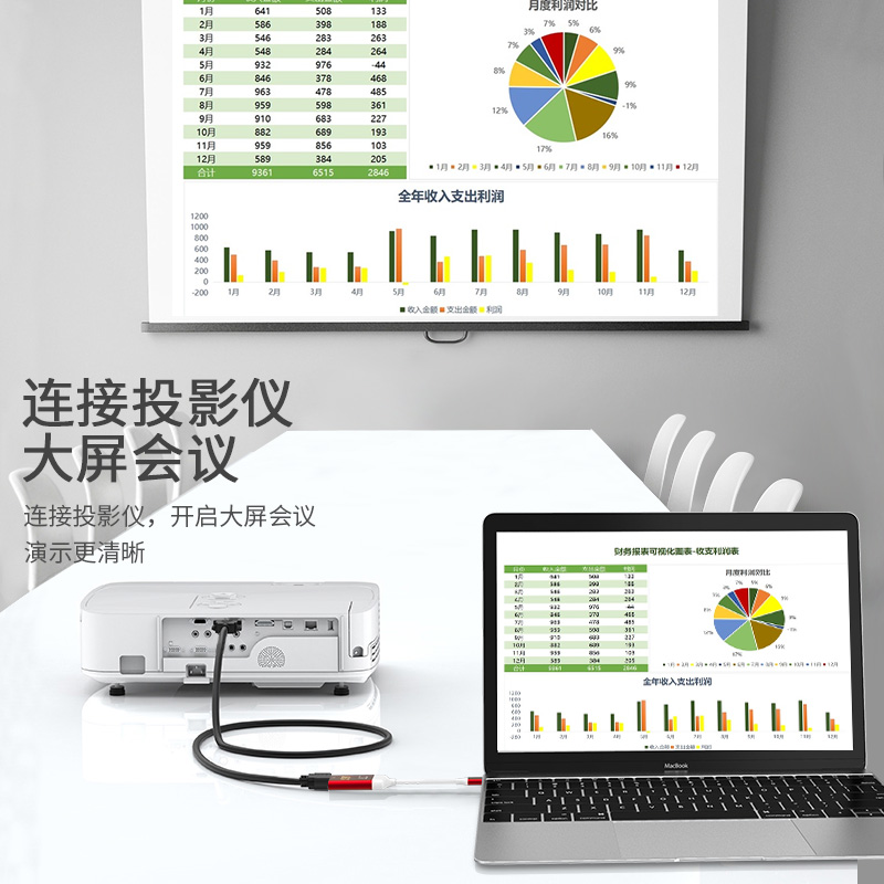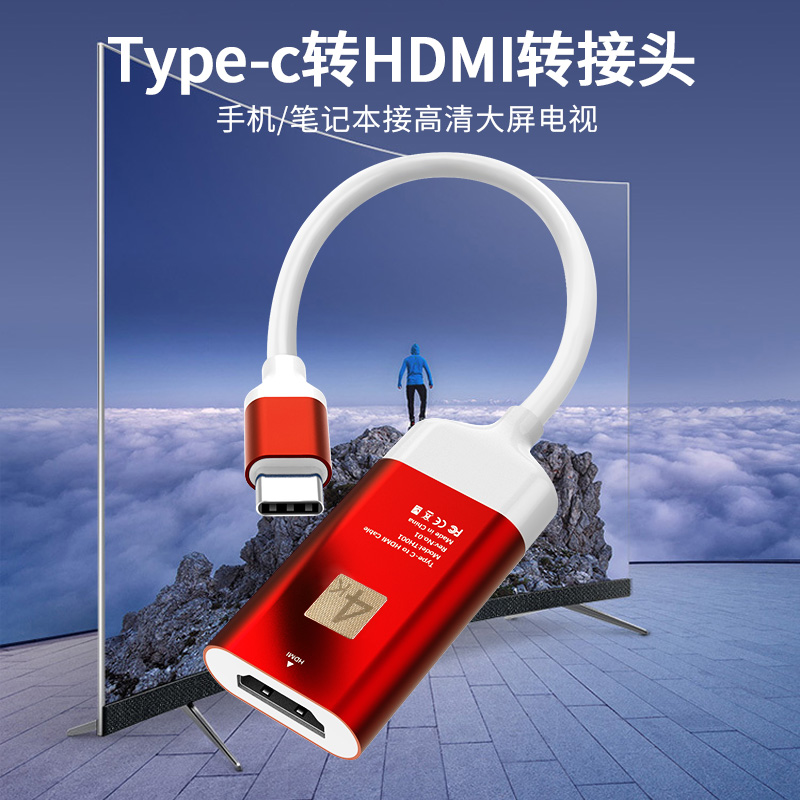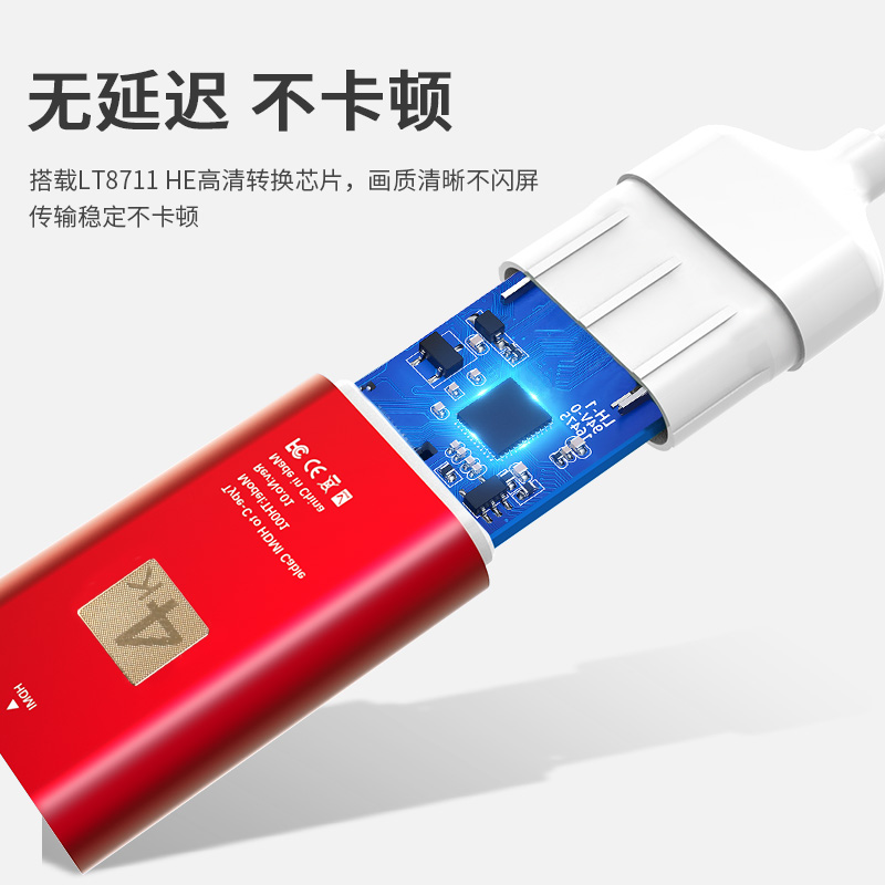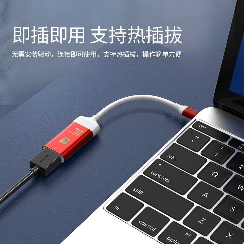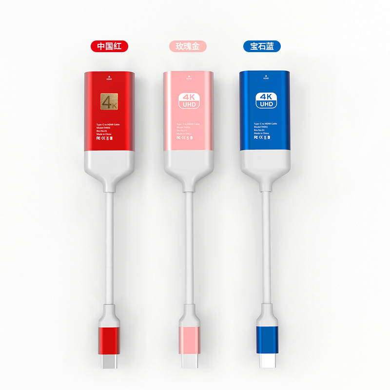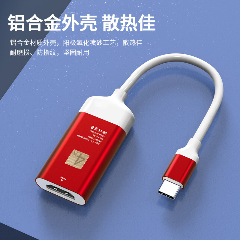 Type-c转HDMI视频输出,4K60HZ传输,即插即用、铝合金头,高稳定性,可接HDMI高清线延长。