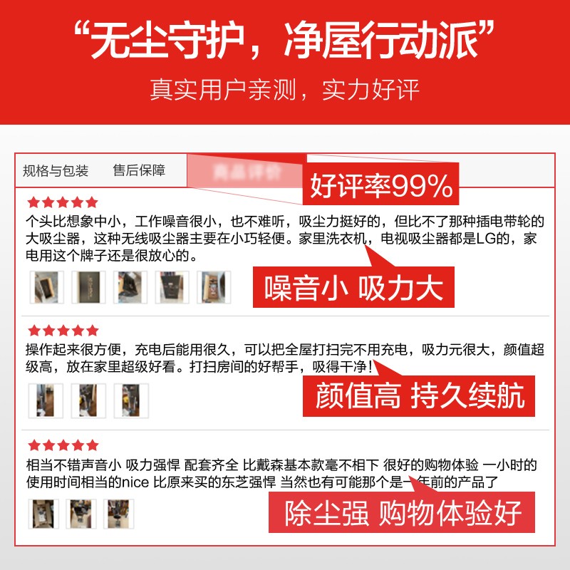 本款产品除了电池/吸头与其他款的不同外,其他硬件参数并无不同,使用了同样高转速无刷变频电机,气旋增加至14个,使得吸力最大可达到220AW。考虑到长期使用避免频繁倾倒灰尘,特别设计了灰尘压缩功能,在不增大尘桶容量的情况下容纳更多灰产毛发。搭载了五重过滤系统,无论是灰尘还是更加细微的可吸入颗粒物全部都会被阻隔在滤网中。此外,HEPA滤网、微滤网和灰尘分离器等滤网均采用防水材质制作,还支持用清水冲洗,清洁维护方便快捷。产品配备的吸杆支持4段式长度调节(900mm-1140mm),有效扩大吸尘覆盖范围。