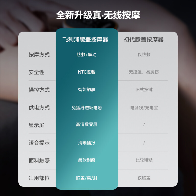 3D环抱式版型设计,搭配柔性面料,大大提升贴合度与舒适度。厚薄适中,不影响关节活动,可戴着它散步、上楼梯、做家务。5秒速热快速均衡,5档调温,带来40~60℃*的温热感,无需热敷时可关闭加热功能,一年四季尽享舒适。大面积发热暖膝,环抱式聚热,保暖性UP。振动按摩,磁吸电池仓,34-46cm大范围调节,高清大屏+语音播报,老人也能轻松用。