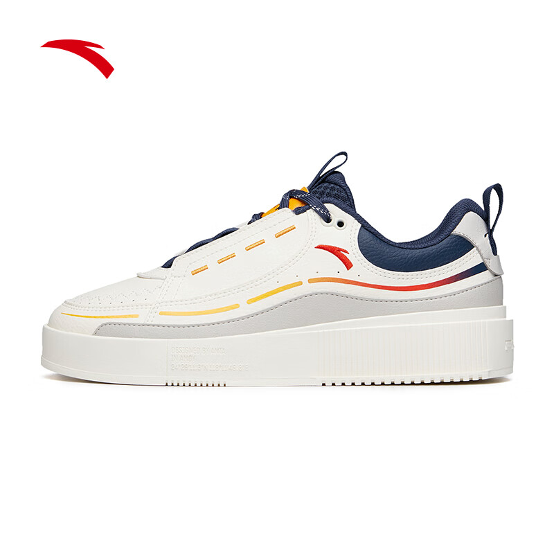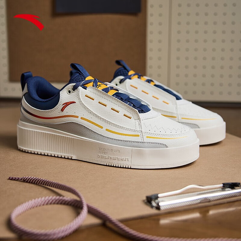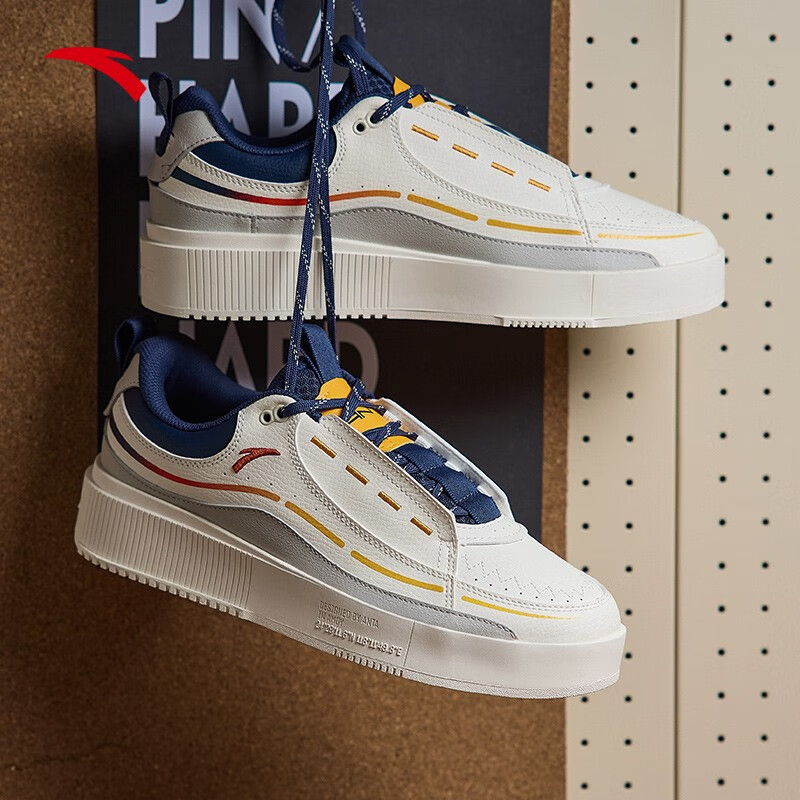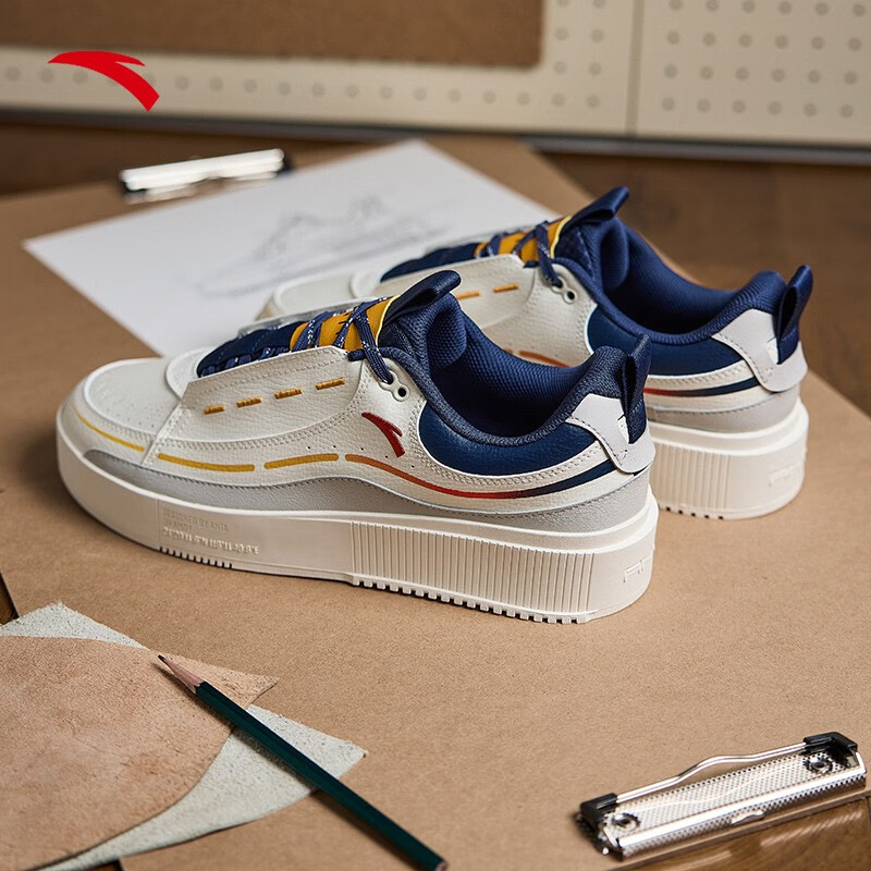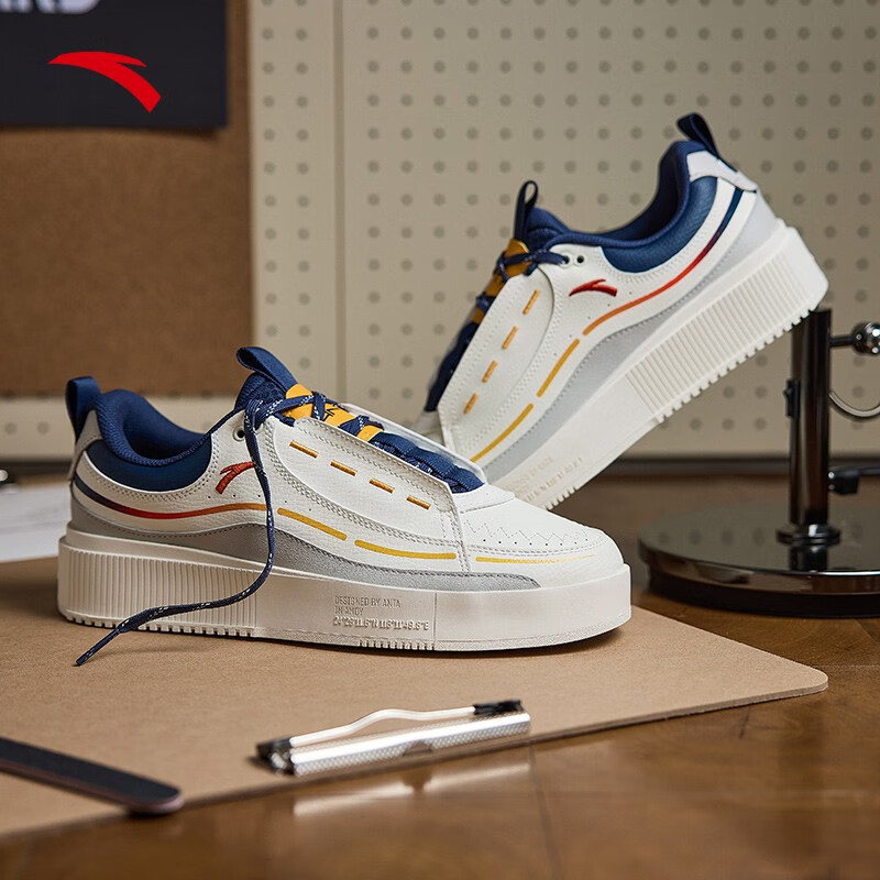 ANTA 安踏 男款运动板鞋 912228033YS,全橡胶鞋底,防滑耐磨,厚实鞋领口泡棉填充,穿着舒适,32度立体环绕橡胶片设计,提升质感的同时,有效保护帮面革料。