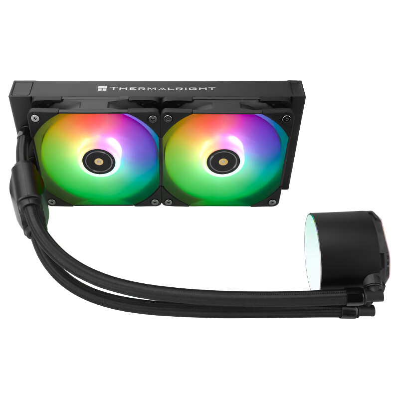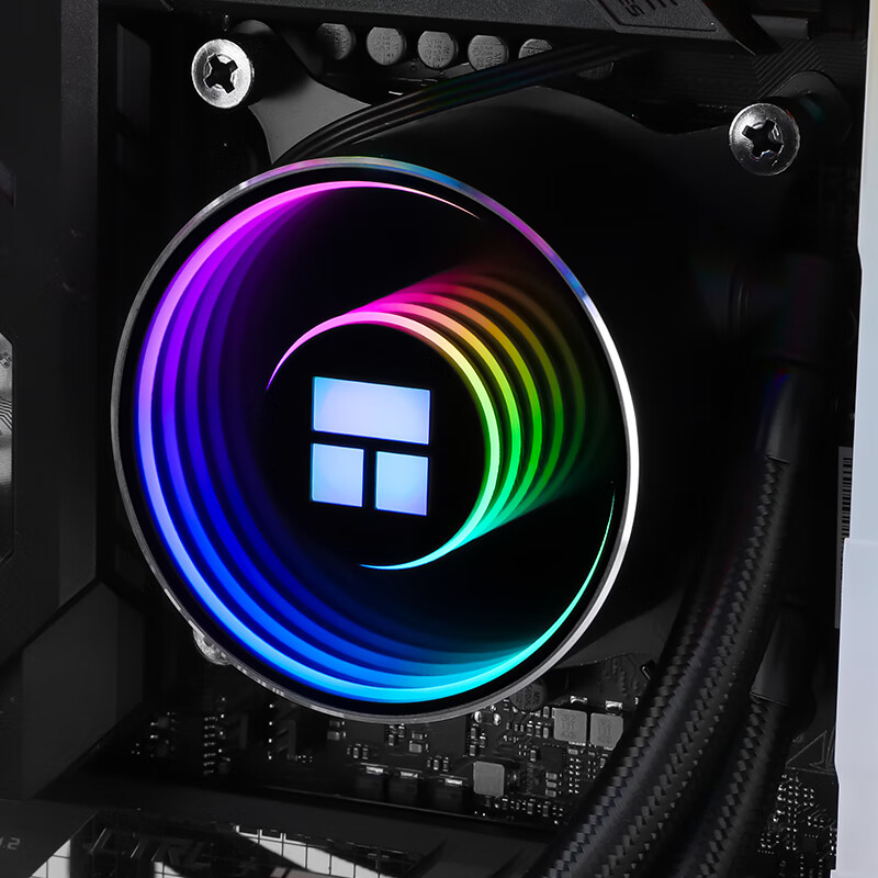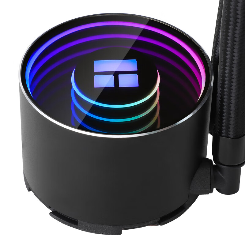此款水冷外壳采用经过阳极喷砂的全铝合金外罩,镜面电镀工艺亚克力顶盖,搭配利民TL-E12W-S风扇,采用S-FDBV2.0磁力流体动态轴承,解决吊装模式下扇叶抖震问题。采用0.10mm间距微水道铜底,全紫铜镜平面底座,长效性陶瓷轴承,高性能POP (Pump on Pipe) 技术水泵冷头分离,减震高效。冷排水道1.55MM,宽度0.28MM壁厚。