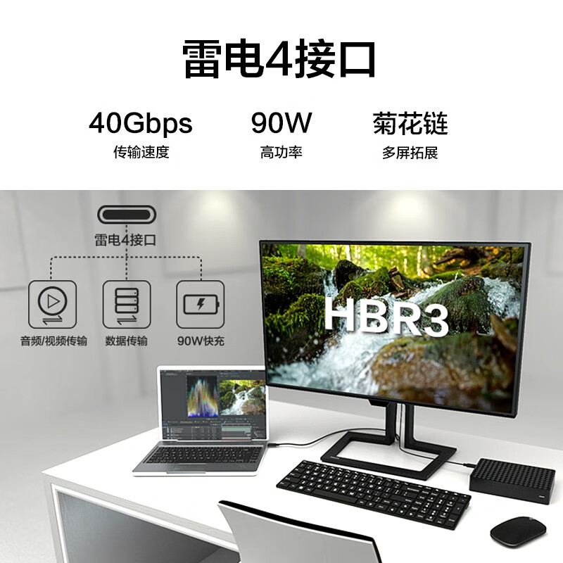 采用 27英寸 mini LED IPS 屏,支持 4K 分辨率,具有 HDR 1400 认证。规格方面,27B1U7903 采用 27 英寸 mini LED IPS 屏,支持 4K 分辨率、60Hz 刷新率、支持Quantum Dot 技术,具备 1300:1 对比度、10bit 色深,delta E 小于 1,拥有99% sRGB、99% Adobe RGB 和 97 DCI-P3 色域,支持色域一键切换,峰值亮度 1400 尼特,并通过了 DisplayHDR 1400 认证,内置的 PowerSensor 传感器能够通过传输和接收无害的红外信号来确定用户是否就位,并在用户离开电脑时自动降低显示器的亮度,从而削减高达 80% 的电费并延长显示器的使用寿命。配备了雷电 4 、 DP1.4、HDMI 2.0、USB-A 等接口以及 RJ45 网口。
