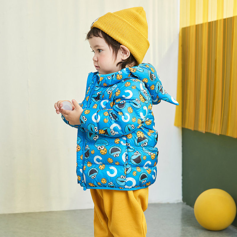 Mini Balabala 迷你巴拉巴拉 儿童白鸭绒连帽羽绒服,90%白鸭绒含绒量, 蓬松柔软,轻薄保暖。 连帽设计,防风性更好,帽子上带有立体耳朵装饰,更加可爱,多色可选。