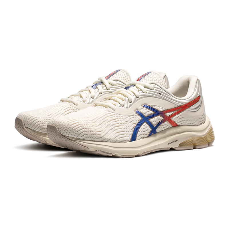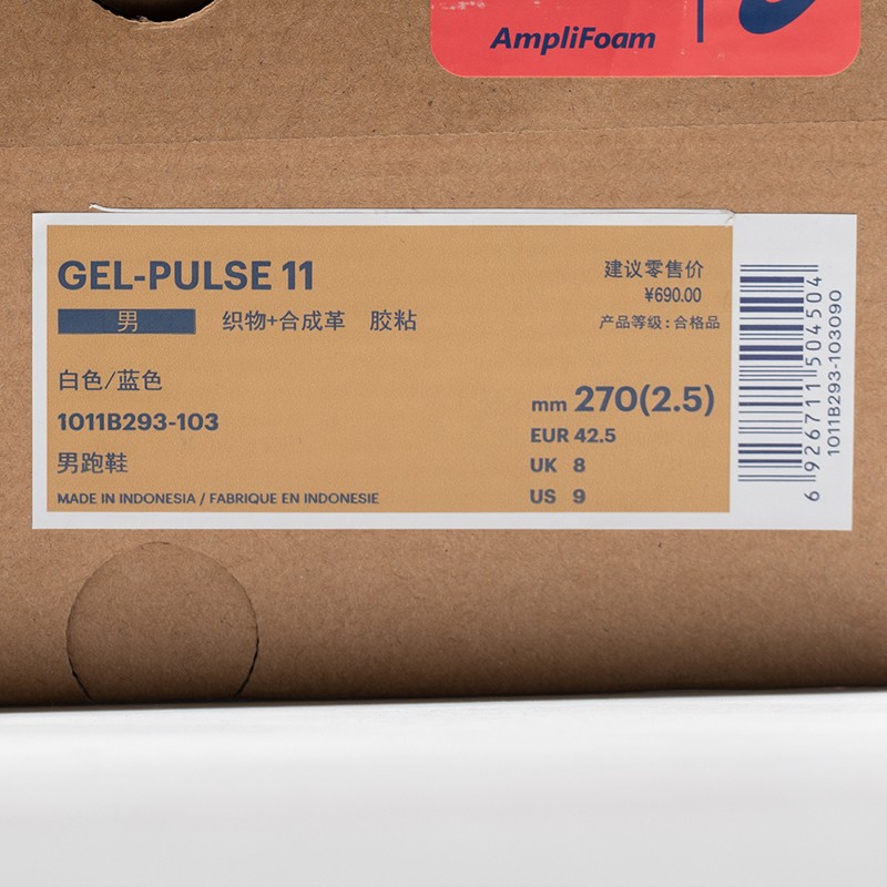 GEL- PULSE1用有流线简洁的设计型体,轻盈灵活。鞋身采用无缝线网面素材,柔软舒适;中底运用柔韧灵活的AMPLIFOAM材质,提供良好的缓冲性和回弹性;后跟GL的搭载,让跑者在脚步落地时减少来自地面的冲击力,提供缓冲保护。