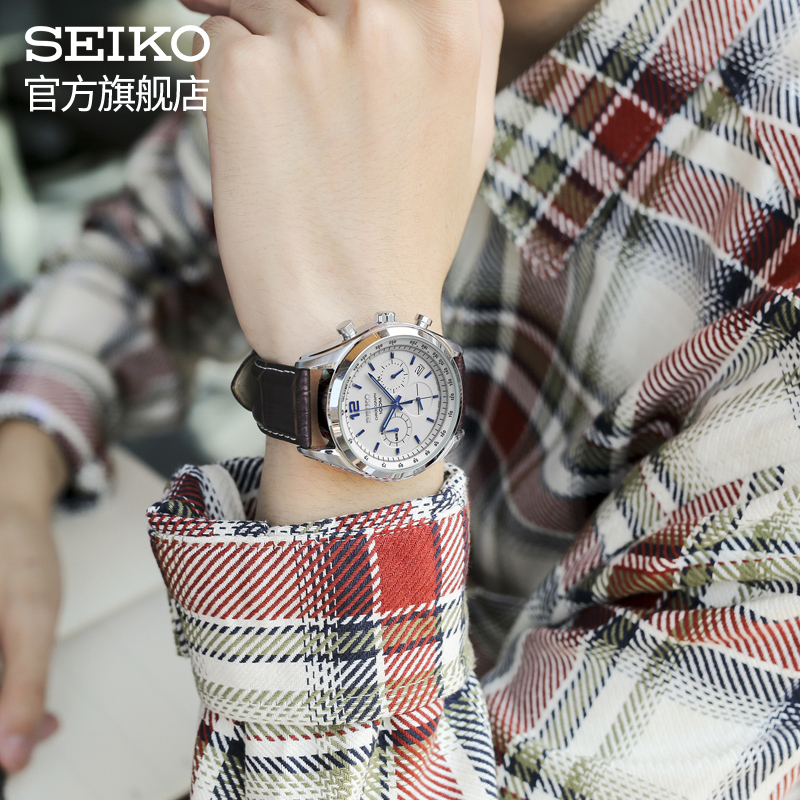 SEIKO 精工 计时系列 男士石英表 SSB095,此款手表的公价为1800元,该表采用矿物质玻璃表镜,具有日期显示功能,10巴防水,不锈钢表盘,树脂表带,防潮防汗,休闲商务皆可佩戴。