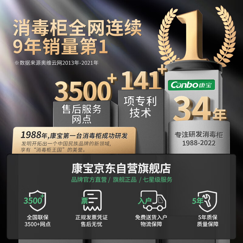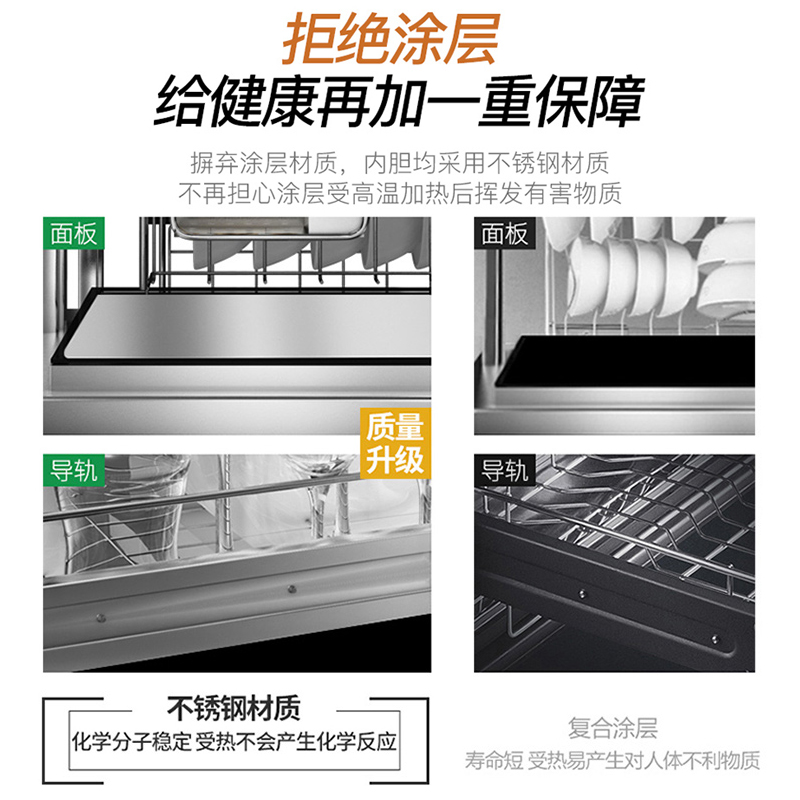 康宝 XDZ100-EB 消毒柜具有100L大容量,上下分层设计,内胆采用430不锈钢材质,加热后不会释放有害物质;支持负离子杀菌技术,搭配60℃热力烘干,除霉祛湿;采用自动安全锁设计,防止宝宝误触;长*宽*高为595*430*598mm。