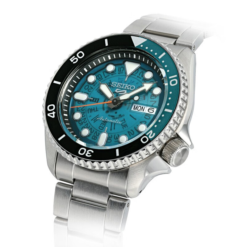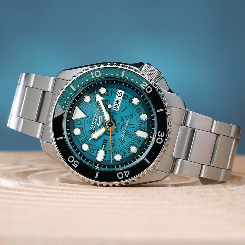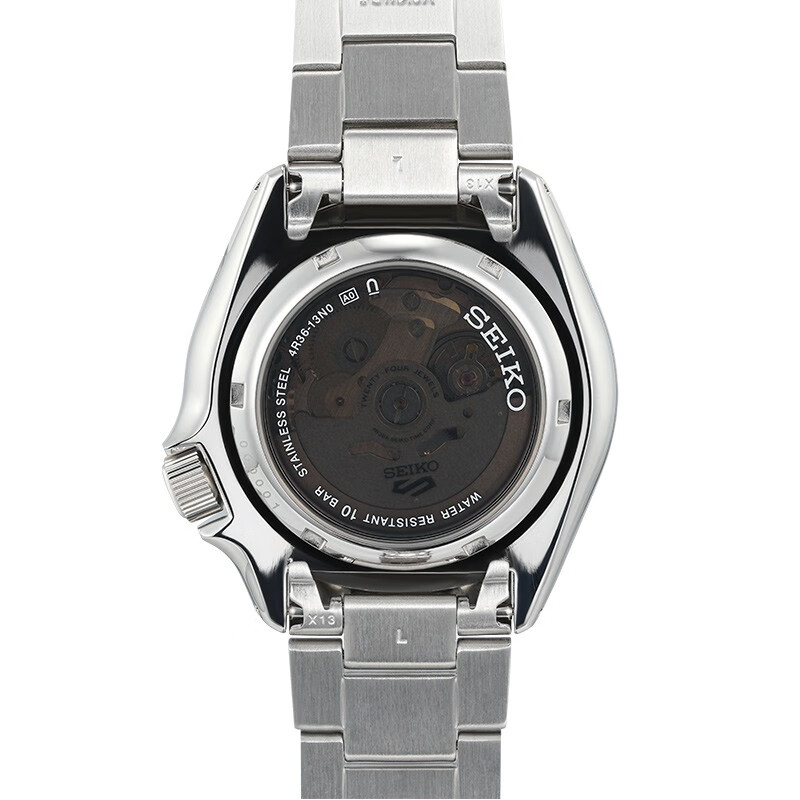 SEIKO 精工 5号系列 男士自动机械表 SRPJ45K1,此款以1970S TIME SONAR腕表设计为基础,通过表盘、秒针的颜色向经典腕表致敬,搭配大时标与指针设计易读性更佳,采用可透视表盘加上可透视螺旋底盖,正面背面都可欣赏机芯运作,趣味满满,整体风格复古而不失动感,展现运动风格,搭载经典的4R36机芯,上链速度快,易操作。支持手动/自动上链,平均日差+45秒~-35秒,已充分上链续航约41小时,具备星期/日历显示、停秒功能,具备10巴防水功能,能够应对日常生活中洗手、洗车等需求,佩戴时安心无忧,注意不可接触热水及水蒸汽,水晶玻璃表镜搭配可透视表盘,清晰易视,展现复古设计风格,可一览机械机芯运作之美,更具观赏把玩价值,三折式按钮开关表扣,个性开合搭配安全锁,不锈钢材质流露质感。