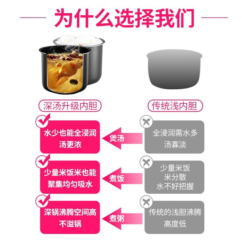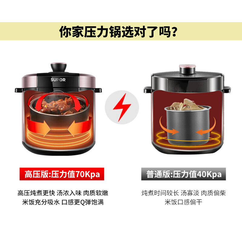 苏泊尔(SUPOR)这款型号为SY-50YC8156的全自动电压力锅,专属深汤锅全浸润式煲煮,用水更少出汤更浓。陶晶涂层更健康,硬度比普通不粘高出5倍,更耐刮花,250℃以上仍稳定,耐高温,更健康。额定功率:900W。