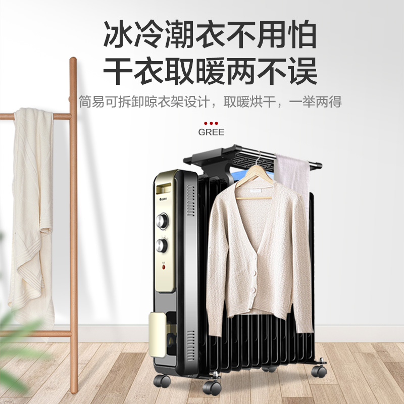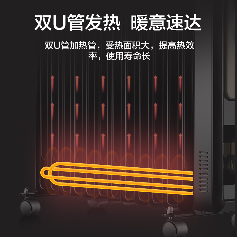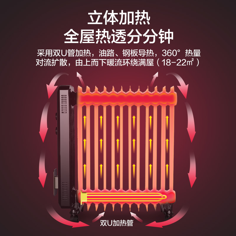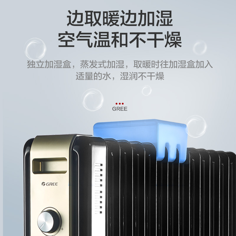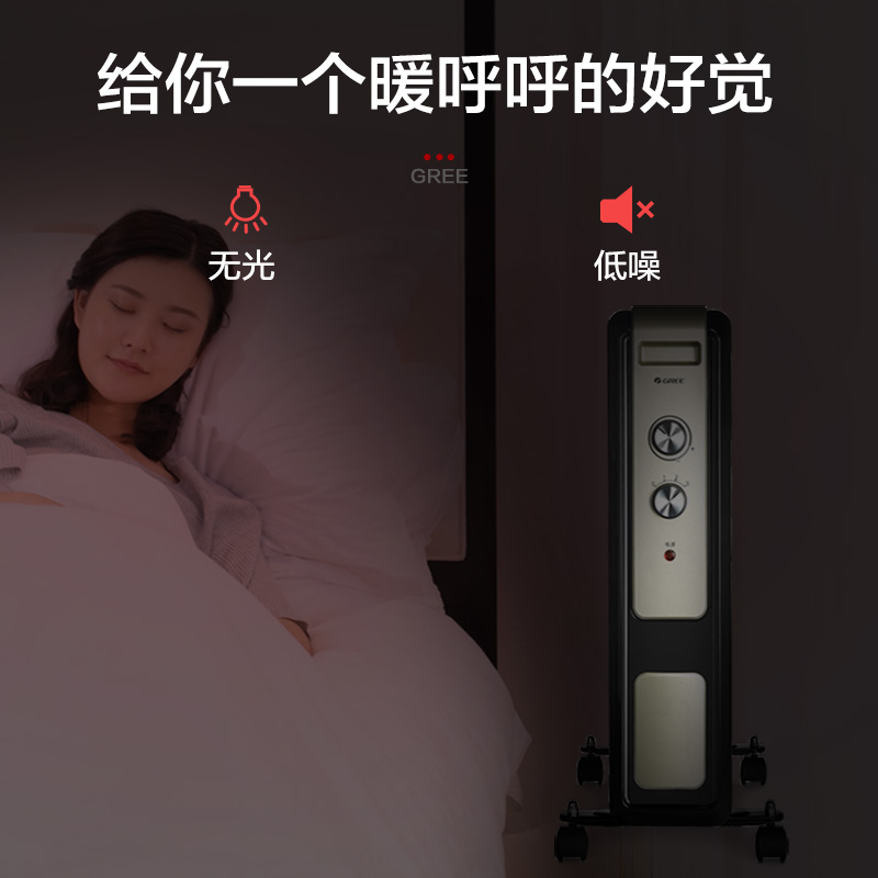 GREE 格力 NDY13-X6126a 取暖器。采用双U管加热,油路、钢板导热,360°热量 对流扩散,由上而下暖流环绕满屋(18-22m)。13片油汀片联合升温 散热速度更胜一筹 大大增加了油汀片与空气的接触面积, 升温效果大大提升。双U管发热暖意速达 双U管加热管,受热面积大,提高热效 率,使用寿命长。