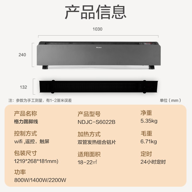 循环加热整屋升温乐享冬日暖眠,双管发热组合铝片,加速冷热空气对流,循环加热空气,提升制热效率。2200W功率,全家共享温暖,3档功率调节,适合客厅、卧室、浴室等22平米内空间使用。