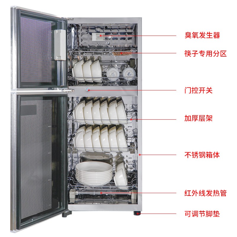 智能循环杀菌,高温对细菌有明显的至死作用,主要是利用高温使菌体细胞膜结构变化,酶顿化失去活性,而使细菌死亡。发泡保温技术,有效保证消毒柜工作时内部处于恒温状态,热量不流失, 增强杀菌、消毒效果。