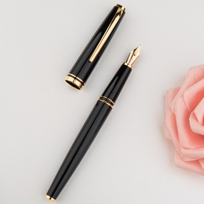 本礼盒套装为黑色金夹款,内含墨水。