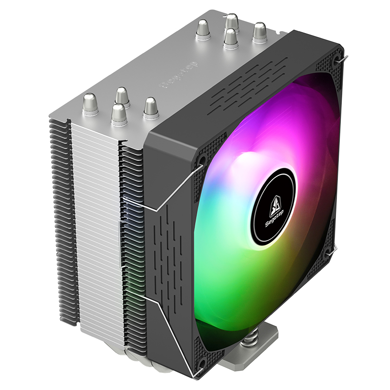 这款散热器搭载AGHP逆重力热管,使用高性能热管,使用纯铜镀镍,可后效防止热管氧化,U星结构导热能效加倍,单管TDP45W,有效解决积热;底座采用回流焊工艺,通过物理有效全接触散热,能将CPU热量迅速传递到热管,导热散热一触即发。使用精工微凸镀镍铜底,微凸表面使接触压力更大,CPU接触面积打12.6c㎡,散热更迅速。使用4mm加厚型材铝座,保证高压不变形的同时高效能散热,加粗M4芽弹簧螺丝,压力通过金属环型扣具向四角延伸,确保散热器与CPU之间严丝合缝。环形扣具四边定位孔设计,解决了传统风冷散热风向单一的痛点,玩家可根据需求自由选择风道吹向。标配120mm双发光模式风扇,支持A/I双平台。