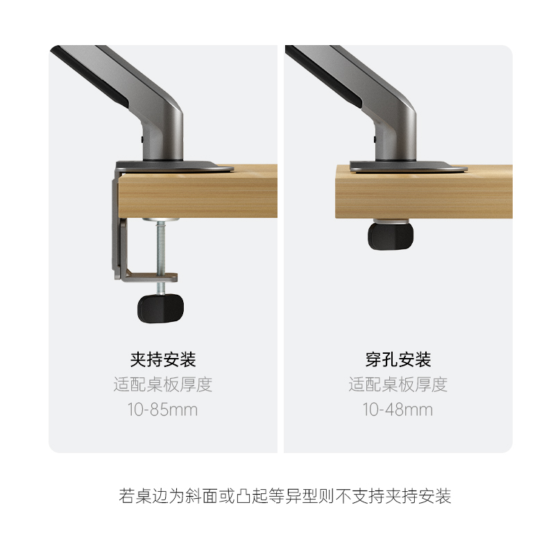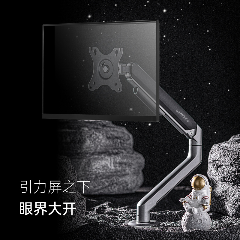 设计做工上其实质感相当不错,完全没有廉价感,而且配色是经典的黑灰金属搭配,号称陨石色,确实很有科技感。无论是金属件的打磨还是各种平时看不到的底面侧面,一丝不苟。 该支架支持显示屏承重2~9kg,适配显示器尺寸 17-32英寸,支持常规屏/曲面屏/带鱼屏等,通用标准规格75x75mm或100x100mm。