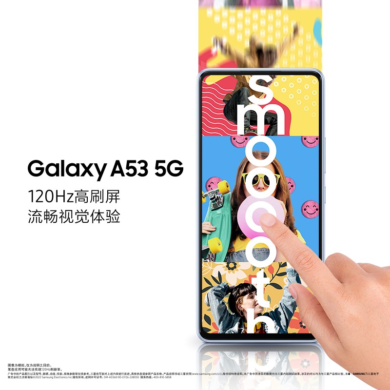 外观方面,使用6.5英寸的FHD+ Super AMOLED显示屏,800尼特亮度,120Hz高刷新率。机身纤薄,摄像头与哑光背板相融合,平滑过渡契合为一体,此次有晴天蓝、宇宙黑、糯糯白以及水蜜桃共四种配色。 配置方面,使用5纳米八核的RAM PLUS处理器,提供128GB、256GB两种可选的内存空间,同时支持高达1TB的扩展存储。后面配备6400万像素的主摄、1200万超广角摄像、500万景深以及500玩微距摄像,前面配备3200万像素的前置摄像。并有OIS光学防抖技术以及AI图像增强优化功能。 其他方面,5000毫安大电池搭配25W快充,缓解低电量焦虑。IP67级防尘防水,可在1米深的清水中保持30分钟不受影响。
