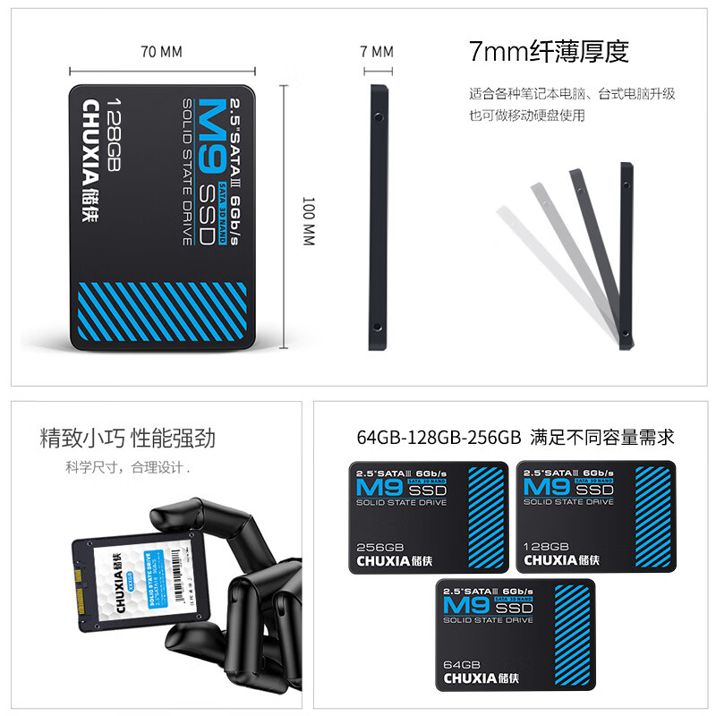 当前的位置: 首页 > 今日值得买 > 储侠(CHUXIA) 256GB SSD固态硬盘2.5sata3笔记本台式电脑升级M9系列高速读写 【128GB】读500MB/S 写450MB/S