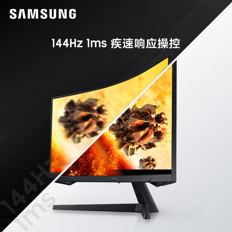 三星 C27G55TQWC 玄龙骑士 显示器搭载一块27英寸VA曲面屏,曲率1000R,分辨率为2K,窄边框设计,拥有144Hz高刷新率、1ms MPRT响应时间,支持FreeSync技术、HDR10、低蓝光护眼。支架支持多角度调节,支持75x75mm壁挂;接口上设有HDMI和DP接口,重约4.5 kg。