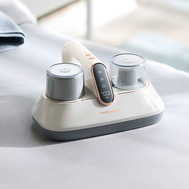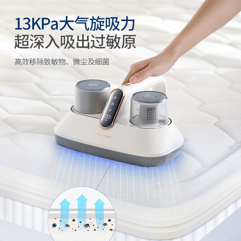 摩飞 MR3100 除螨仪采用电动高速螺旋滚刷,置有86组软绒刷头,多触点高频拍打达每分钟72000次,强震降低螨虫附着力,深入缝隙扫螨、拾尘。245nmUV光波穿透,99.99%杀灭致病菌。0泄漏倍安心,拾高或倾斜自动关停照射。内置三芯动力锂离子电池,最高续航力达30min,4小时充满电,随取随用。