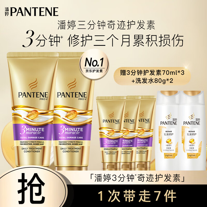 PANTENE(潘婷)是宝洁旗下国际领先的洗护发品牌,于1947年在欧洲创立,其产品专注秀发损伤修护,是护发素市场的领军品牌。这支这款潘婷3分钟奇迹护发素,一直有着很好的口碑,在网络上的讨论度也非常高。膏体呈现淡黄色的乳霜质地,涂抹在发丝上的渗透力很快,冲淋时也很方便,既能让发丝持久润泽,也不会黏腻扁塌,味道清甜,前调是红果之鲜味,中调是馥郁花香,后调是清新香草味。主要成分有抗氧化组氨酸和双重氨基酸精华,能形成发膜一样的保护层锁住色彩,配合潘婷拿手的明星护发成分“PRO-V维生素B5”加强修护补水,高纯度度脂醇配方可以精准渗透发芯,使秀发及时滋润,并持续抵御干枯。