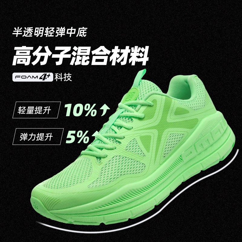全新研发foam4+科技,着重提升四大物性中的轻弹两顶指标,让每一步都像第一步有力。步态摇摆技术,有效减少踝部关节的能量损耗,让您在跑动中更流畅和高效。避免鞋内挤压对脚步造成损害,保持贴合稳固的同时让脚步有充分活动空间