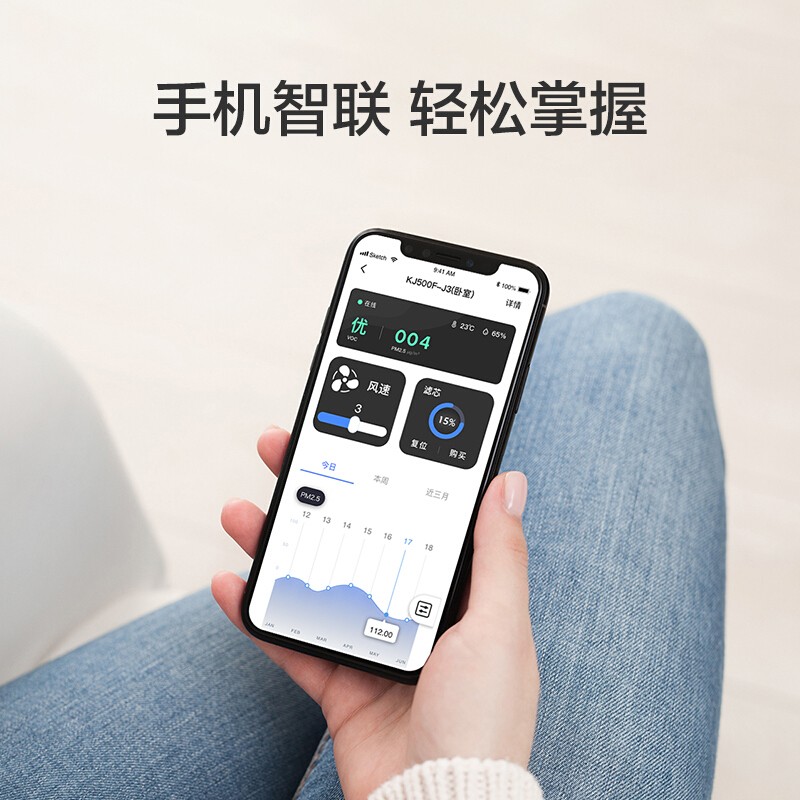 IAM KJ500F-T3 家用空气净化器,采用双面同时进风净化结构,实现最大550m3/h的PM2.5 CADR净化量,适用面积高达60㎡,睡眠档噪音低至27.5dB。搭载高碘值的改性活性炭滤网,高效吸附甲醛以及TVOC等有害物质,从而实现320m3/h的甲醛CADR净化量。内置负离子发生器,主动降解并沉降空气中有害物质。
