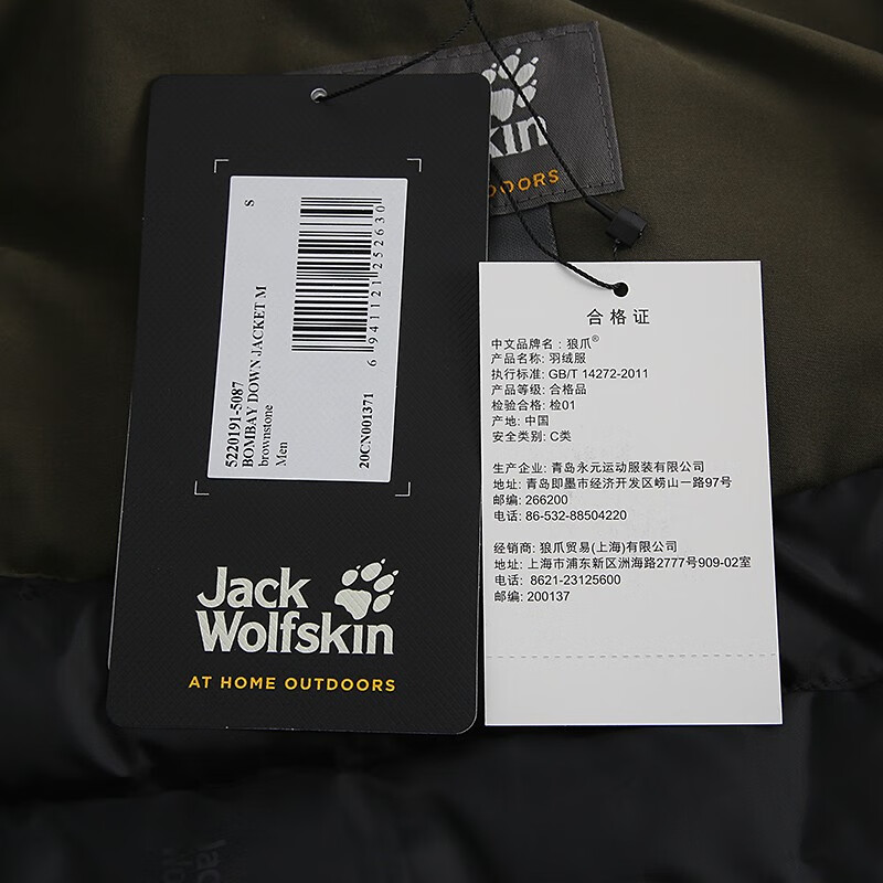 Jack Wolfskin 狼爪 5220191 男装户外休闲外套,天然羽绒原料,配合防风科技和健康环保科技,有效防风、不易沾水、不含氟碳化合物,同时兼具舒适透气。