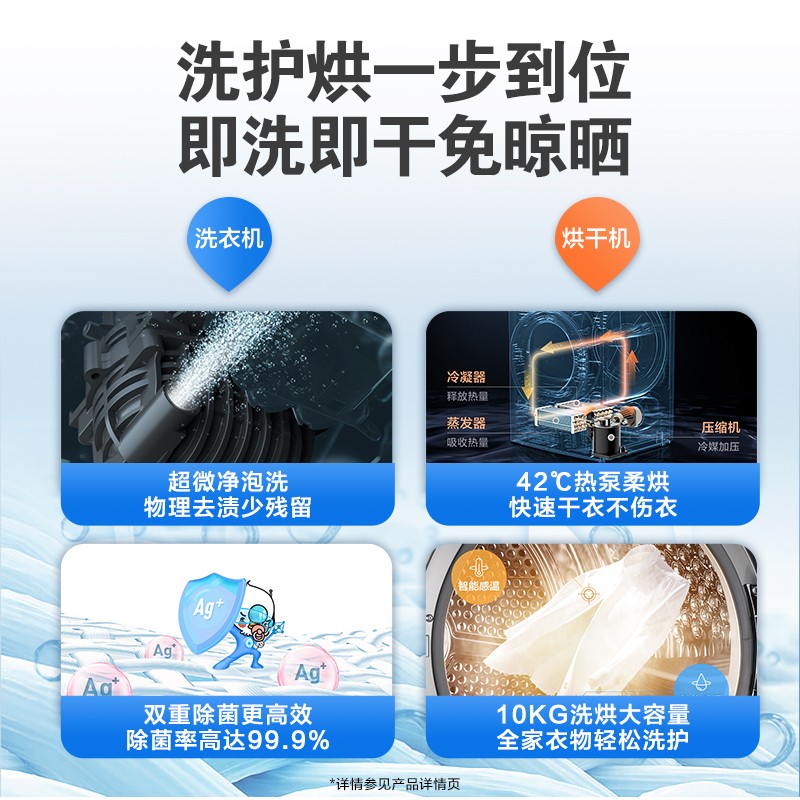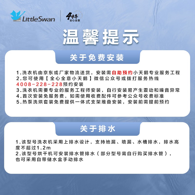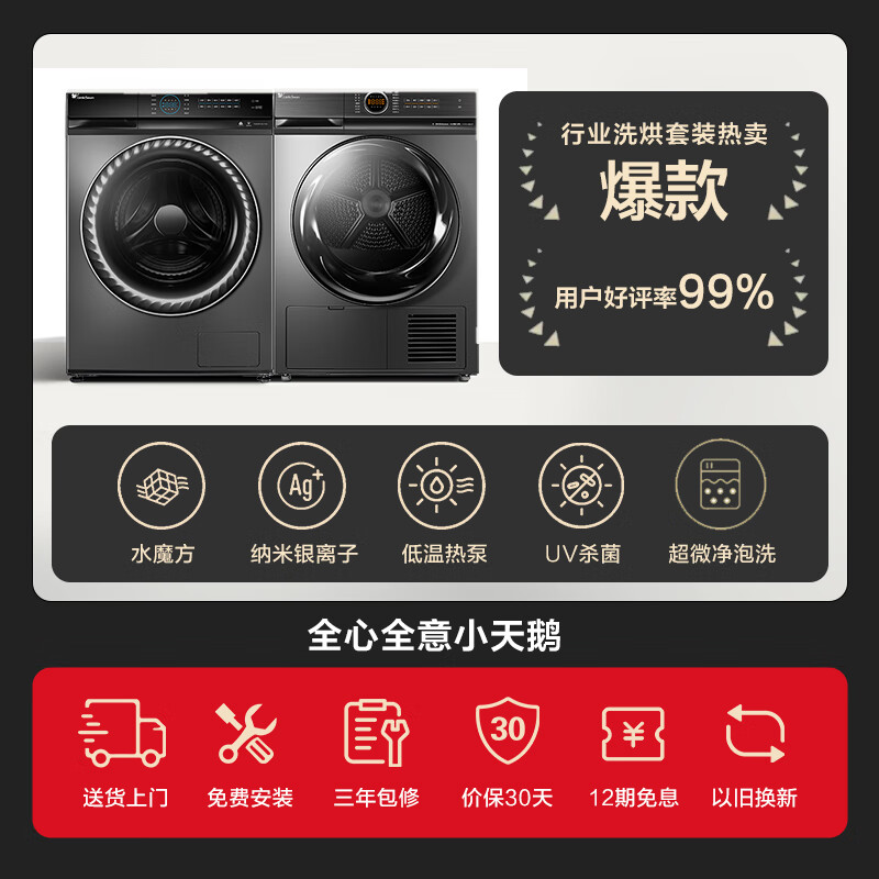 小天鹅 TH100-H36WT 烘干机采用热泵式低温烘干技术,还原纤维弹力,让衣物自然蓬松不僵硬。搭载智能感温系统,可实时监控筒内干衣程度,衣干即停,防止变形、缩水,呵护家人的健康。此款为小天鹅20年新上的新一代干衣机,对比小天鹅的老一代热泵烘干机做了很大改善,首先在外观上,操作面板采用了更大更美观的面板,计时功能放在旋钮上,外观更高大上,搭配高端洗衣机更好看,颜值喜人,功能上也有很大突破,常规的热泵烘干温度低,省电,智能正反转功能都是具备的,除此之外,这款烘干机是真正意义上做到了蒸汽熨烫,区别于很多蒸汽熨烫是用筒内水份蒸发假熨烫,这款机器搭配了独立的蒸汽发生器,在门口左上侧有蒸汽的出气口,衣服烘干更柔软舒展,同时还有消毒除螨等定温烘干,搭配上独有晒被子功能,彻底解放阳台,非常的方便。