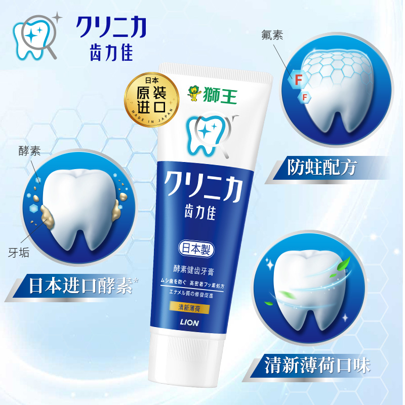 狮王的酵素牙膏和雪豹的生物酶牙膏,长期使用也不会形成耐药性菌群,混合唾液可以有效的分解隐藏的牙垢,这也是为何使用酵素(生物酶)牙膏提倡干刷的原因,即不要在牙刷上蘸水。传统牙刷干刷需要比湿刷更长的刷牙时间,故拥有强劲动力的电动牙刷成了干刷方法的良好方案,且用量也要节省三分之二。