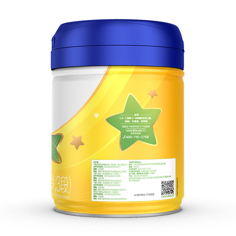 飞鹤始建于1962年,从丹顶鹤故乡黑龙江齐齐哈尔起步,是中国最早的奶粉企业之一,同时也是国内第一个建立起完整奶粉全产业链的乳企,旗下拥有星飞帆、超级飞帆-臻爱倍护、臻稚有机等系列产品,星飞帆奶粉是比较畅销的系列,很多宝爸宝妈选择奶粉首要关注的就是奶源,星飞帆的奶源来自北纬47°黄金奶源带:扎龙湿地,这里日照充沛,牧草资源丰富,是确保奶源品质的重要条件。星飞帆用新鲜生牛乳(鲜奶)制作,挤奶到加工2小时,保证了奶粉的新鲜营养,天然含有OPO,适合宝宝娇嫩肠胃吸收,更适合中国宝宝体质,此外,星飞帆对重要营养素也进行革命性“升级”,益生元GOS升级,低聚果糖FOS升级为低聚半乳糖GOS,促进肠道益生菌增殖,调节微生态平衡,提升肠道保护力。