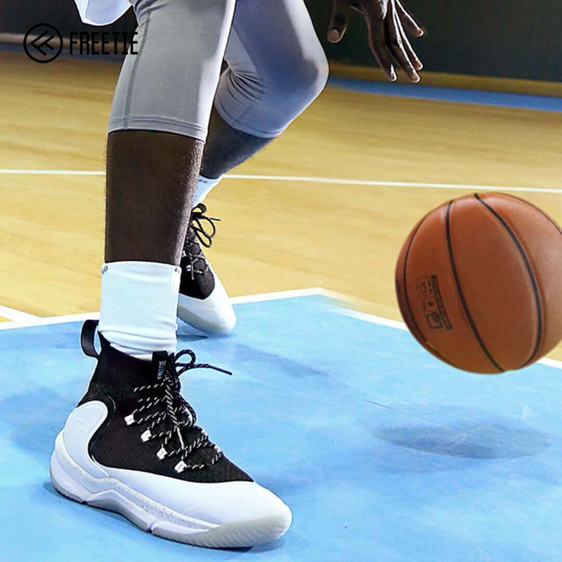 FREETIE C31813 男款驭空篮球鞋,全掌橡胶大底,各种场地无所畏惧。鞋身混合材料支撑,保护你的每一个动作。TPU抗扭平衡片,小片大作用。侧身稳定系统,一起面对每一次交锋。一体式飞织鞋面,舒适与功能并存。