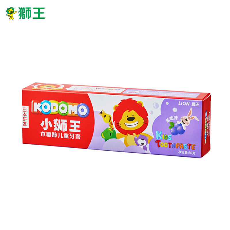 LION 狮王米奇儿童牙膏,是专门为儿童制造的防龋齿牙膏,安全可吞食。牙膏特别添加的酵素,能够有效分解并去除口腔内的牙垢,促进乳齿或刚长出的永久齿的坚固性;蕴含钙配方及细小清洁微粒,促进牙齿内侧表层的再石灰化,提高去除牙垢的效果;还特别添加了预防龋齿的木糖醇,起到保护牙齿,调节口味的作用,更易于被小朋友接受;包装采用一体式连盖壳体设计,直立放置方便,不占空间。