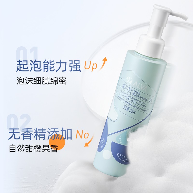 这款氨基酸洁面慕斯,适合敏感肌,起泡丰富,能卸淡妆,含自然甜橙果香,无香精添加。